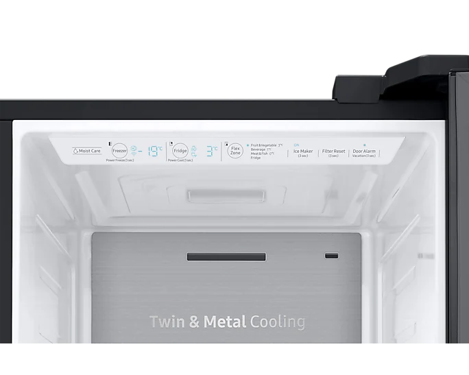 Його об'єм становить 624 літри, що забезпечує достатньо місця для зберігання їжі та напоїв. Завдяки типу охолодження Twin Cooling Plus, холодне повітря рівномірно розподіляється всередині холодильника, зберігаючи ідеальну температуру для зберігання продуктів.