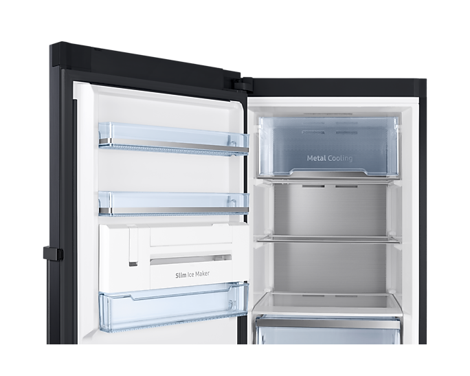 Основною перевагою моделі є використання технології Metal Cooling, яка забезпечує швидке охолодження і збереження оптимальної температури. З об'ємом 323 л, холодильник пропонує достатньо місця для зберігання продуктів, а також має Slim Ice Maker для виробництва льоду та інноваційний механізм освітлення – LED.