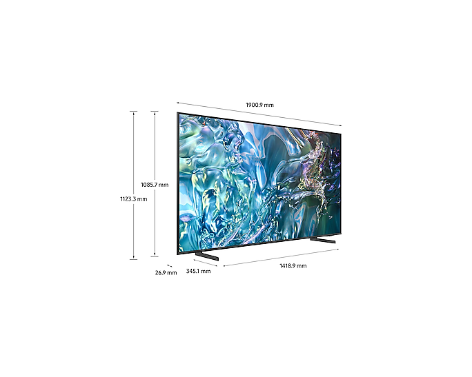Телевізор Samsung TQ85Q60D поєднує в собі передові технології та елегантний дизайн. З його великим 85-дюймовим QLED екраном насолоджуйтеся яскравими кольорами, завдяки технології Quantum Dot, яка пропонує понад потужний мільярд відтінків кольорів. Роздільна здатність 4K (3840 x 2160) гарантує чітке зображення, а функція 4K Upscaling підвищить якість ваших улюблених контентів до вражаючого рівня.