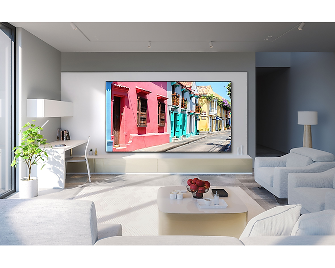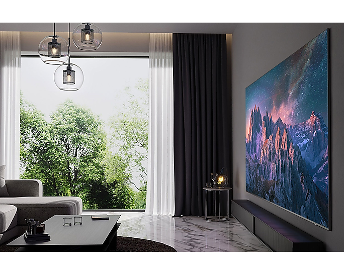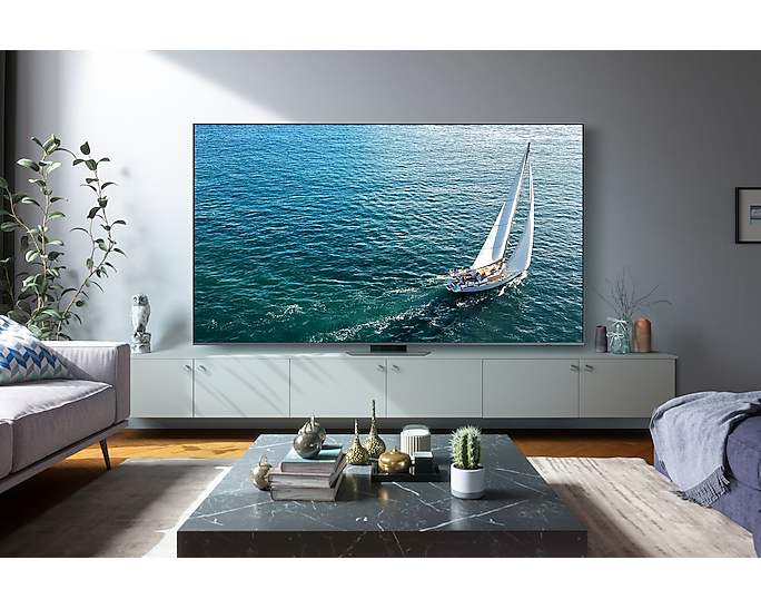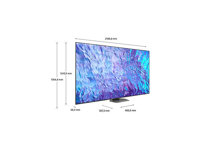 Завдяки стильному дизайну з безрамковим екраном і можливостями Ambient Mode, телевізор Samsung TQ98Q80C стане не лише центром розваг, але й елегантною частиною вашого інтер'єру. Його потужність споживання становить до 430 Вт з класом енергоефективності F, що також важливо для збереження ресурсів.