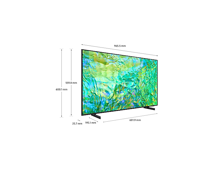 З точки зору підключення, телевізор обладнаний трьома портами HDMI, двома USB та підтримує Wi-Fi та Bluetooth. Завдяки простій установці та можливості кріплення на стіну, Samsung TU43CU8005 стає ідеальним вибором для будь-якої кімнати.