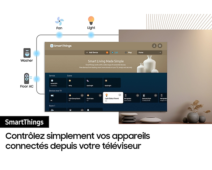 З інтегрованим Smart TV Tizen, ви зможете насолоджуватися усіма популярними сервісами стрімінгу в одному місці. Система SmartThings стане вашим надійним помічником для управління домашніми пристроями. Телевізор також підтримує AirPlay і два одночасних з’єднання через Bluetooth, що робить його максимально зручним у використанні.