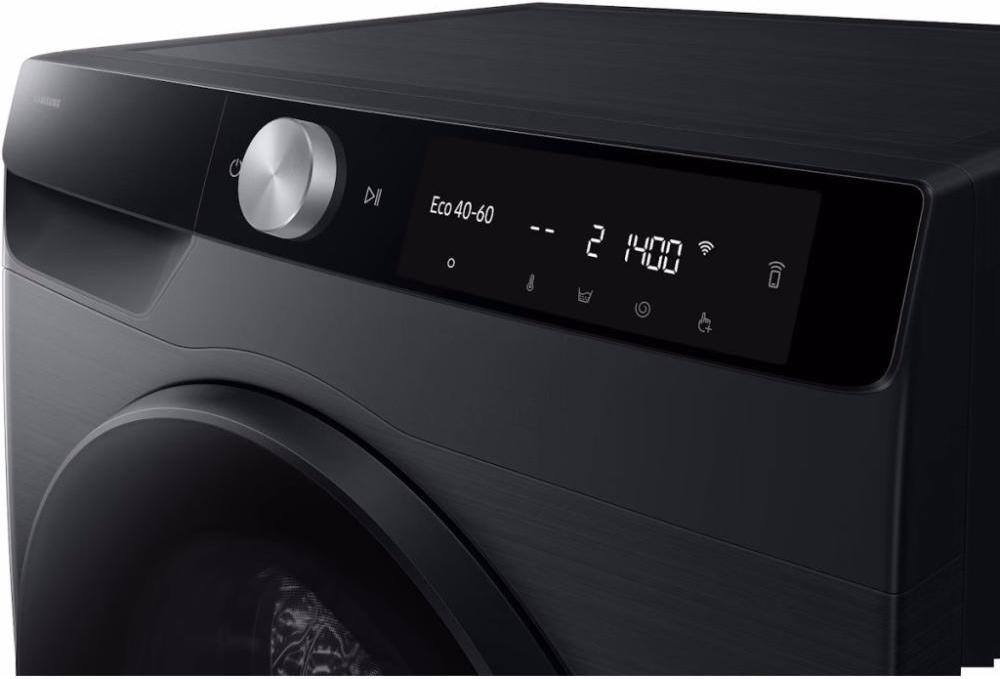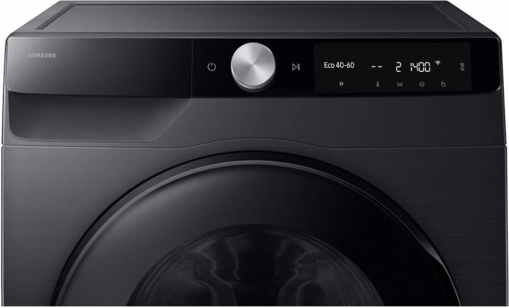 Для освіження одягу без використання води передбачений режим Air Wash, що обробляє речі гарячим повітрям, усуваючи запахи та бактерії. Управляти пральною машиною можна за допомогою поворотного перемикача та сенсорних кнопок на LED-дисплеї, з можливістю дистанційного контролю через застосунок SmartThings.