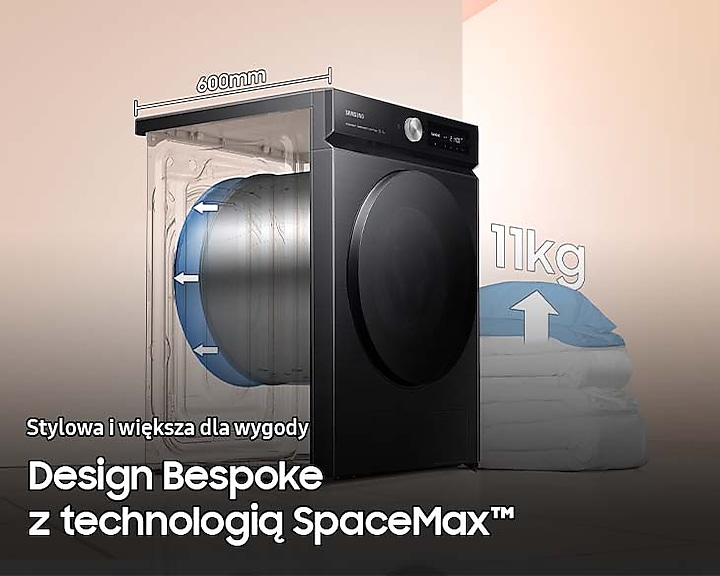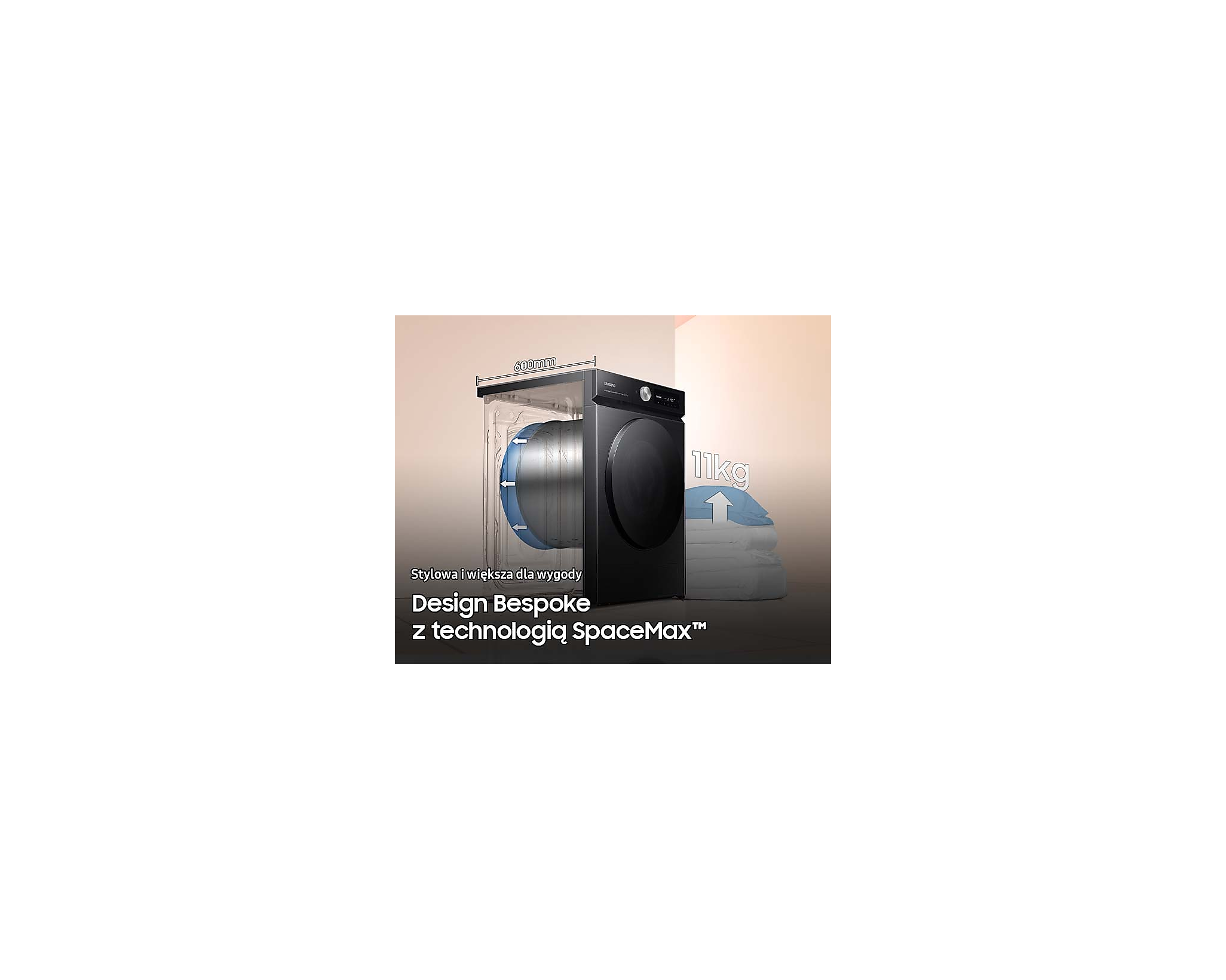 Технологія SpaceMax™ дозволяє розширити об'єм барабану до 11 кг*, зберігаючи при цьому стандартні зовнішні розміри пристрою та забезпечуючи ідеально чисте прання навіть до 50% швидше завдяки технології QuickDrive™ (Q-Bubble™).