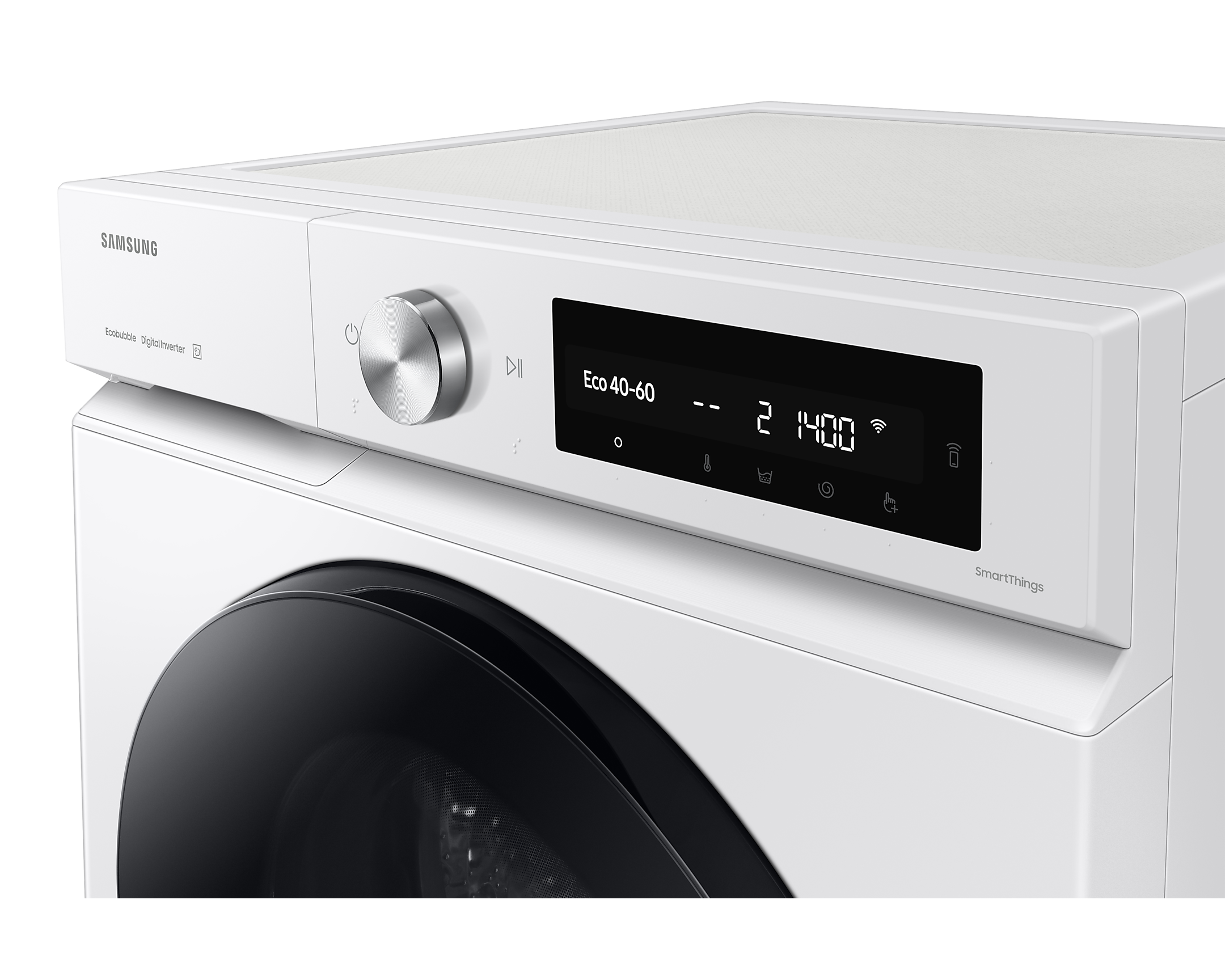 Крім того, пральна машина має вбудований модуль Wi-Fi, що дозволяє керувати процесом прання через додаток SmartThings, який також надає можливість моніторити споживання енергії та прогнозувати її витрати. Також є можливість отримання рекомендацій від пральної машини для оптимальних параметрів циклу прання.