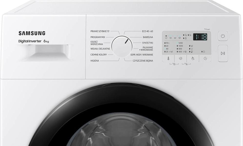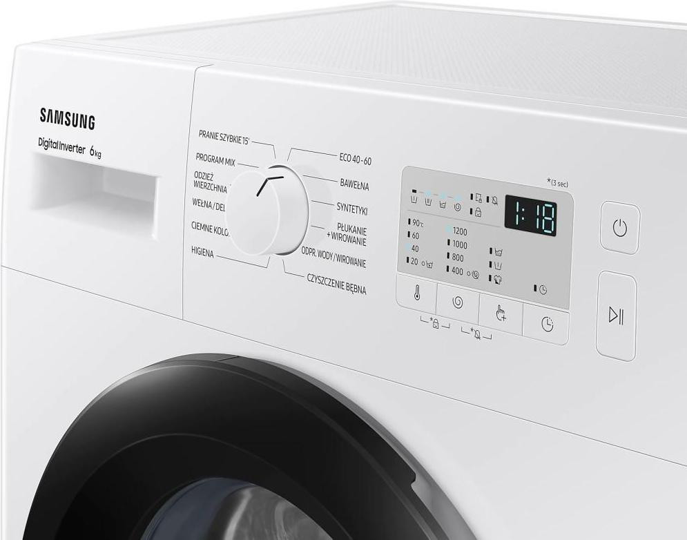 Samsung WW60A3120BH пропонує 10 програм прання, що включають функцію легкого прасування та прання спортивного одягу. Важливою особливістю є технологія «6 рухів турботи», що забезпечує оптимальний режим прання для різних типів тканин. Також присутня мобільна діагностика SmartDiagnosis для швидкого усунення неполадок.