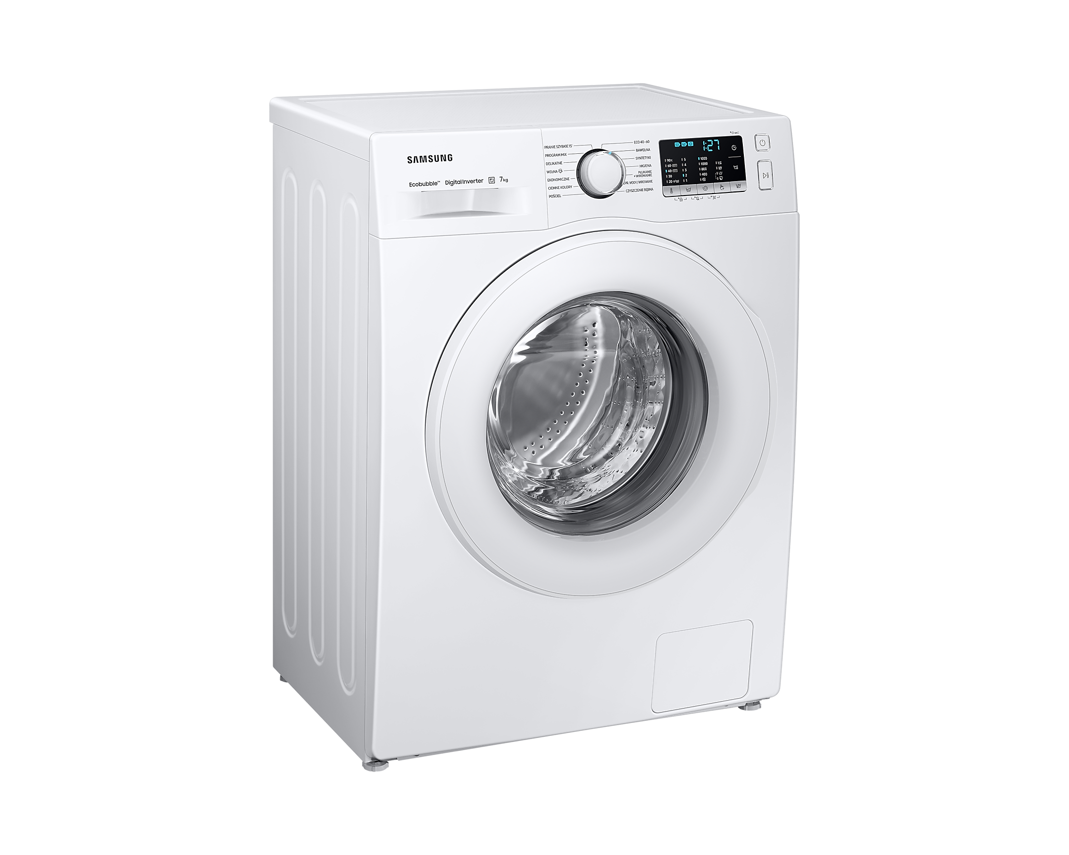 З метою збереження чистоти пральної машини розвинуто функцію StayClean, яка дозволяє підтримувати гігієнічну чистоту без ручної чистки. Машина також оснащена функцією активної піни, яка легко та ефективно видаляє забруднення з тканин. Щодо фізичних параметрів, ця модель має об'єм барабану для прання 7.0 кг, технологію EcoBubble™, клас енергоефективності D та фізичні розміри 600 x 850 x 450 мм при вазі 55 кг.