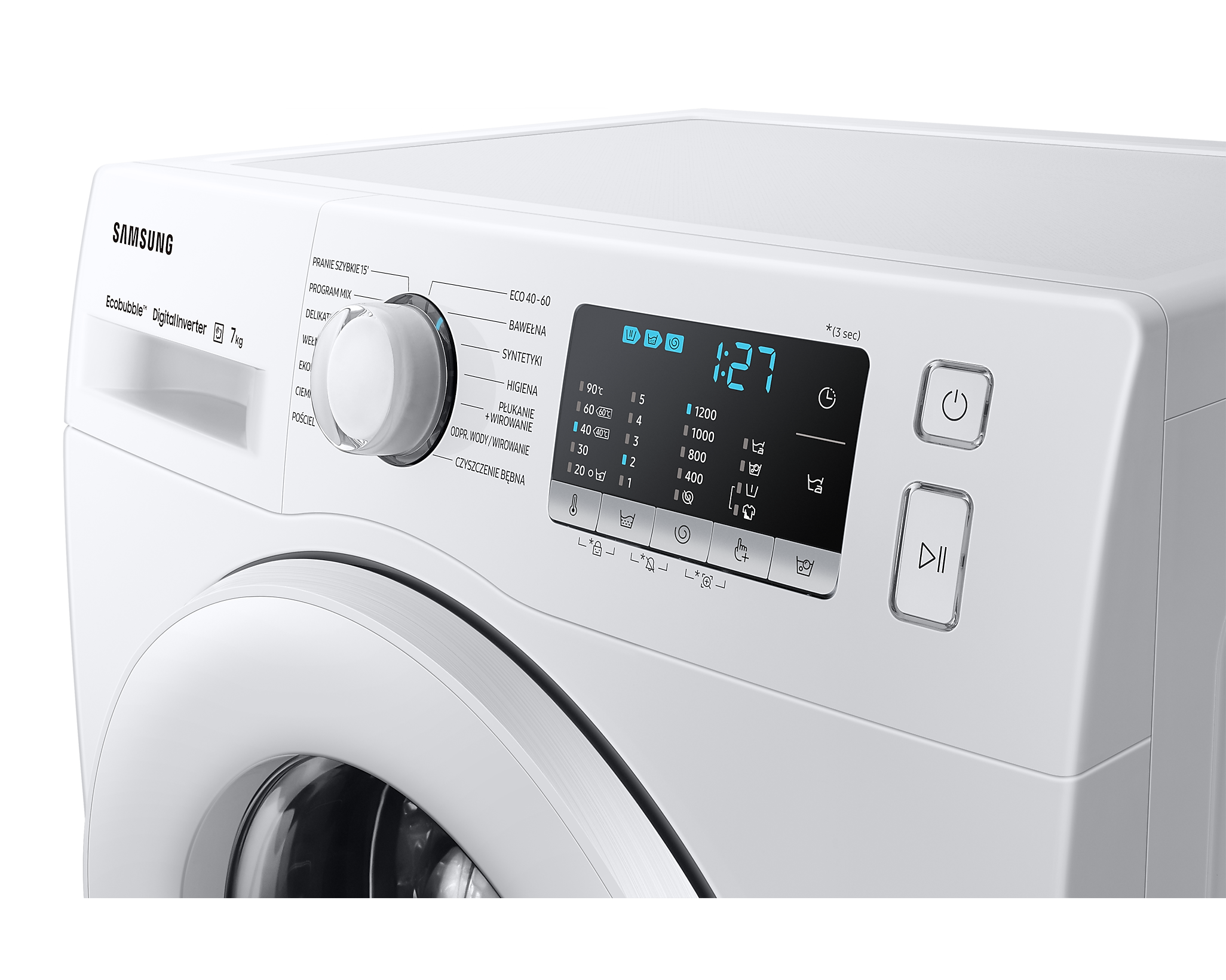 Пральна машина Samsung WW70AGAS21TEEO - це високоефективна техніка для вашого дому. Основні характеристики цієї моделі - Ecobubble™, яка забезпечує енергоефективне та ефективне прання навіть в низьких температурах. Технологія EcoBubble™ створює активну піну, яка проникає в тканини і навіть до 24% ефективніше видаляє забруднення, зменшуючи витрати енергії навіть до 70% та захищаючи колір і структуру тканин. Також варто відзначити програму гігієнічної пари, яка забезпечить високу ефективність у видаленні забруднень та підвищить чистоту білизни без використання додаткового попереднього прання. Пральна машина видаляє навіть найважкі плями та до 99,9% бактерій та алергенів. Сильник Digital Inverter™ забезпечує надійну роботу та зменшує споживання електроенергії, що робить його одним із найбільш енергоефективних пральних машин. Тривалість роботи цього сильника може досягати 20 років, забезпечуючи тиху та ефективну роботу. У моделі також передбачено програму чищення барабану, яка видаляє до 99,9% бактерій і сигналізує про необхідність очищення в сам час.
