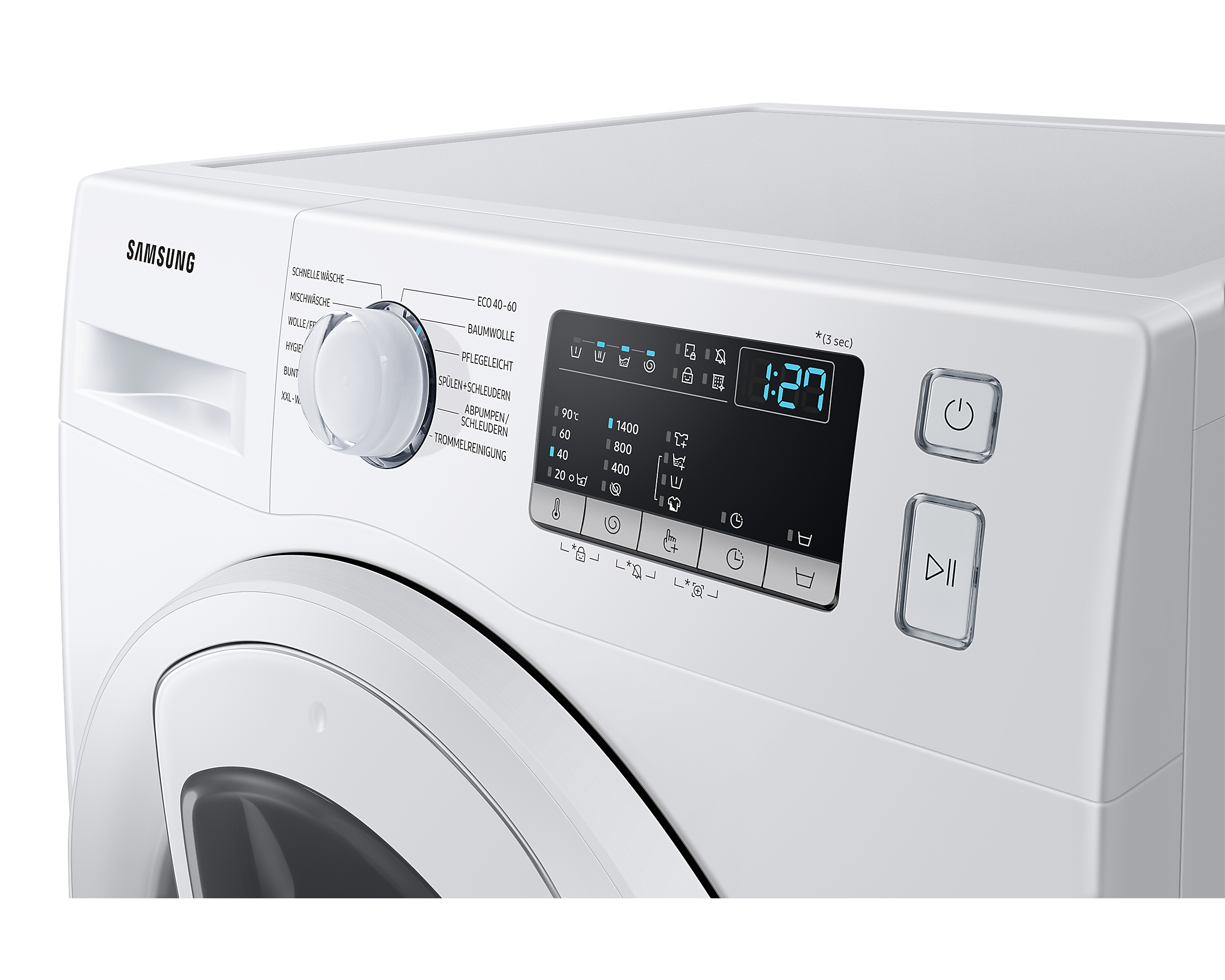 Samsung WW70T4543TE/EG - це модель пральної машини з великою кількістю інноваційних функцій, що роблять процес прання максимально зручним і ефективним. Однією з основних відмінностей є технологія AddWash™, що дозволяє в будь-який момент прання додати забуту білизну, додатковий порцію миючого засобу, засіб для змягчення тканин чи навіть речі, які потрібно лише прополоскати або віджати. Це можливо навіть у той час, коли пральна машина вже розпочала роботу.