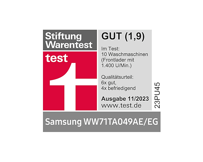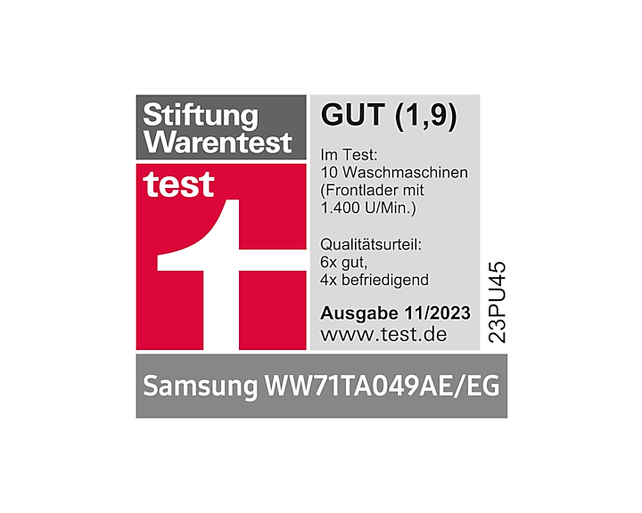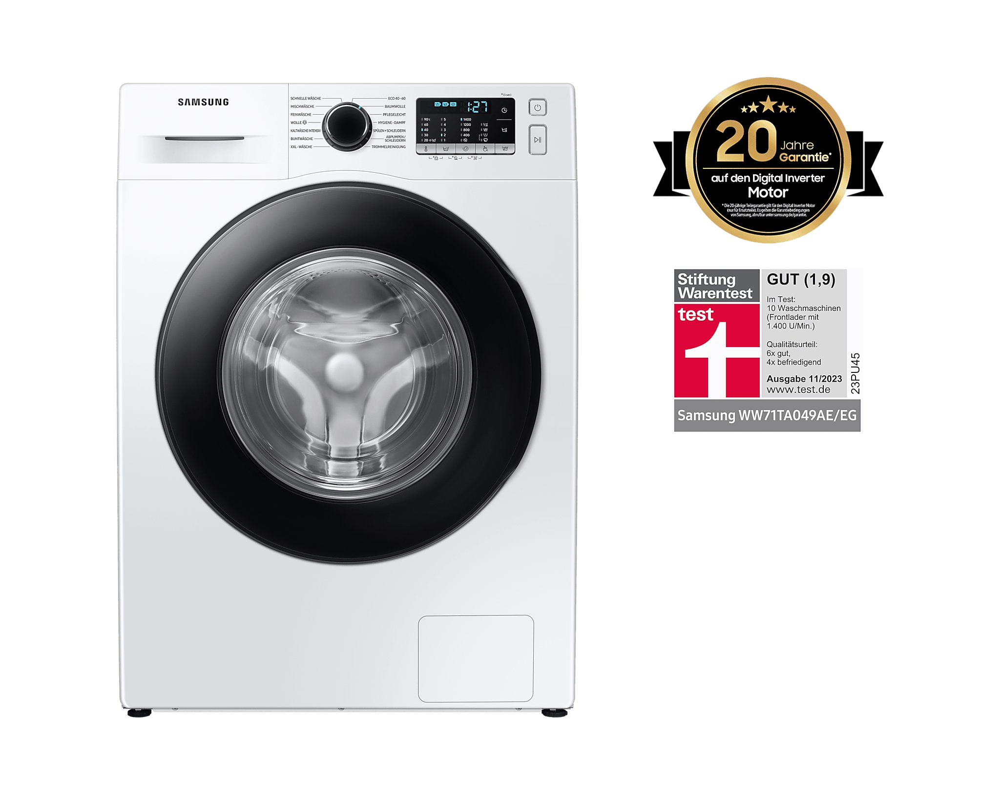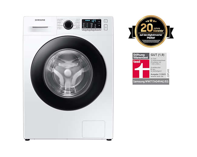 Стиральна машина Samsung WW71TA049AE/EG - це надійний помічник для вашої дому. Завдяки SchaumAktiv технології, вона здатна надавати якісне прання навіть при низьких температурах, забезпечуючи при цьому високу економічність та збереження кольорів одягу. Hygiene-Dampfprogramm гарантує глибоке проникнення дампфу для максимальної чистоти вашого одягу, знищуючи при цьому бактерії та алергени. Особливо слід відзначити FleckenIntensiv-функцію, яка ефективно видаляє навіть найбільш проблемні плями за рахунок інтенсивної обробки протягом 30 хвилин. Стиральна машина обладнана самоочищувальною відсічкою для миючих засобів, яка зберігає її в чистоті та забезпечує, що миючі засоби потрапляють туди, куди потрібно - до вашого одягу. Ця модель відрізняється високою якістю побудови, що підтверджується 20-річною гарантією на цифровий інверторний двигун. Крім того, система автоматичної діагностики SmartCheck спростить вам вирішення можливих проблем. Завдяки функції Trommelreinigung, ваша машина завжди залишатиметься чистою та готовою до роботи. Крім того, відповідно до даних виробника, стиральна машина має енергоефективність класу B, максимальну швидкість віджиму 1400 об/хв та місткість 7 кг. Технічні характеристики: Макс. швидкість віджиму: 1400 об/хв Місткість: 7 кг Колір корпусу: білий/чорний Розміри (Ш x В x Г): 600 x 850 x 550 мм Додаткові особливості: - SchaumAktiv-технологія - FleckenIntensiv-функція - Гарантія 20 років на цифровий інверторний двигун - Hygiene-Dampfпрограма - Сенсорна автоматика - Самоочищувальна відсічка для миючих засобів - Trommelreinigung - SmartCheck - діагностика у разі несправностей - Клас стійкості до забруднень: B Особливості дизайну: - Чорний дисплей - Діамантовий барабан Отже, стиральна машина Samsung WW71TA049AE/EG - це оптимальний вибір для тих, хто цінує високу якість прання, надійність і економію енергії.