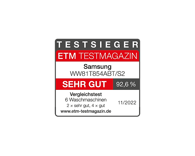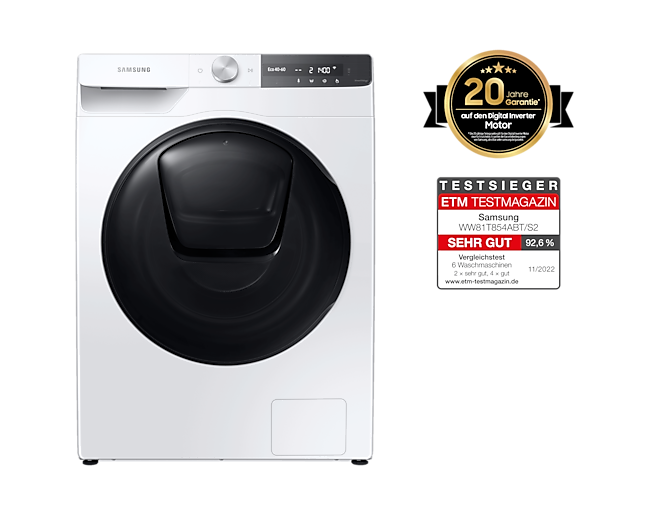 Побутова пральна машина Samsung WW81T854ABT/S2 - ідеальний вибір для сучасних господарств. Модель відмінно поєднує в собі високу ефективність, безпеку й зручність в керуванні.