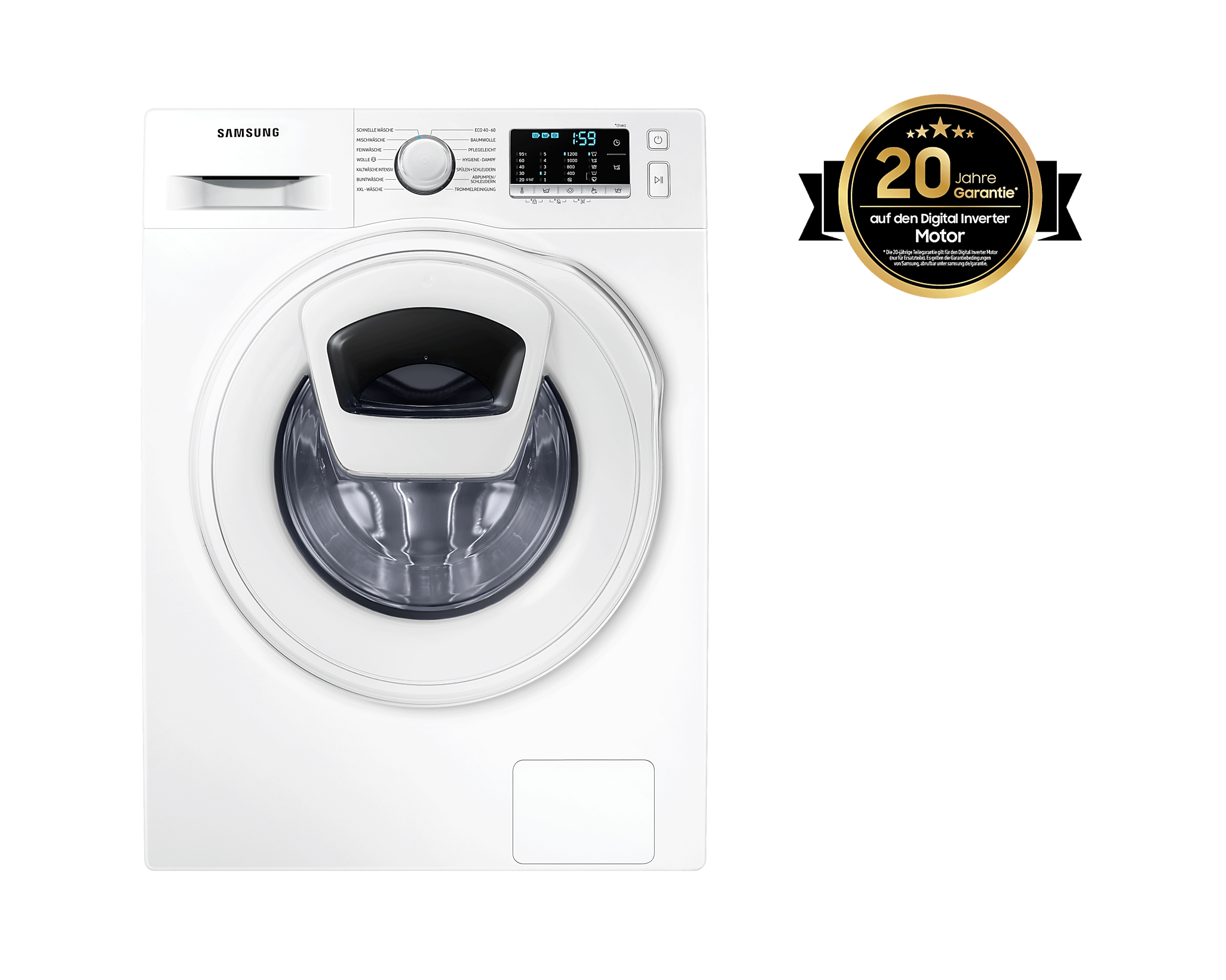 20 років гарантії на цифровий інверторний двигун дозволяють насолоджуватися потужним та енергоефективним пральним процесом протягом багатьох років із меншим шумом.