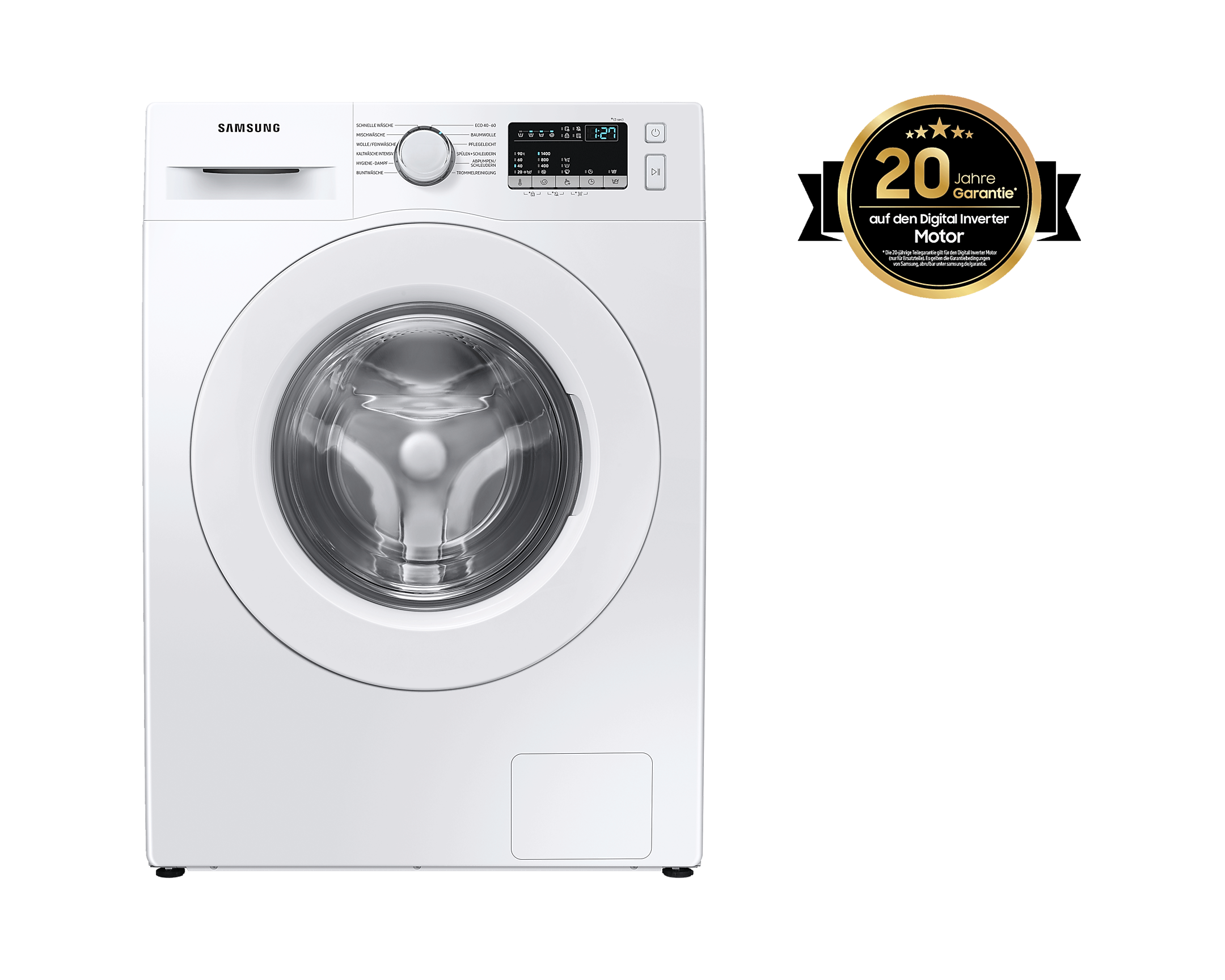 Машина оснащена цифровим інверторним двигуном з гарантією на 20 років, який забезпечує ефективність, тиху роботу та тривалий термін служби.