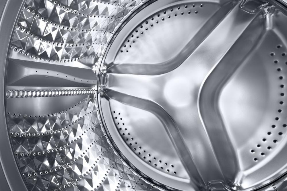 Оснащена інверторним двигуном, який гарантує тривалу роботу, та барабаном Diamond, що чиститься за допомогою спеціальної програми без додавання миючих засобів. Завдяки технології Eco Bubble білизна очищується на 99,99% від бактерій та алергенів, а функція Bubble Soak ефективно усуває навіть стійкі забруднення, насичуючи тканини піною.