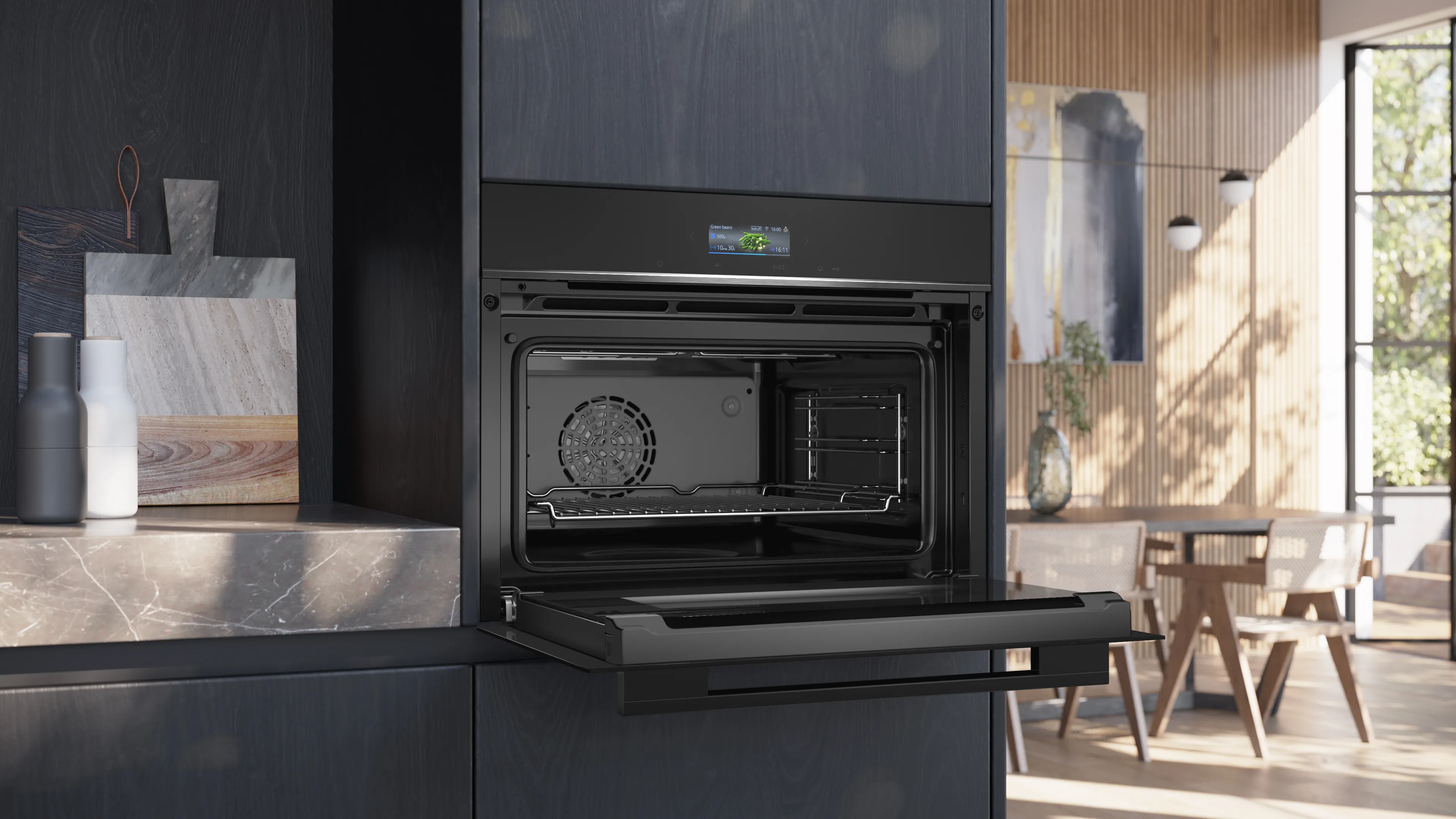 Для зручності користування модель оснащена просунутими направляючими, що полегшують доступ до страв у будь-який момент. З можливістю підключення до Home Connect, ви можете контролювати та управляти приладом через смартфон, що робить його ще більш функціональним і зручним у використанні.