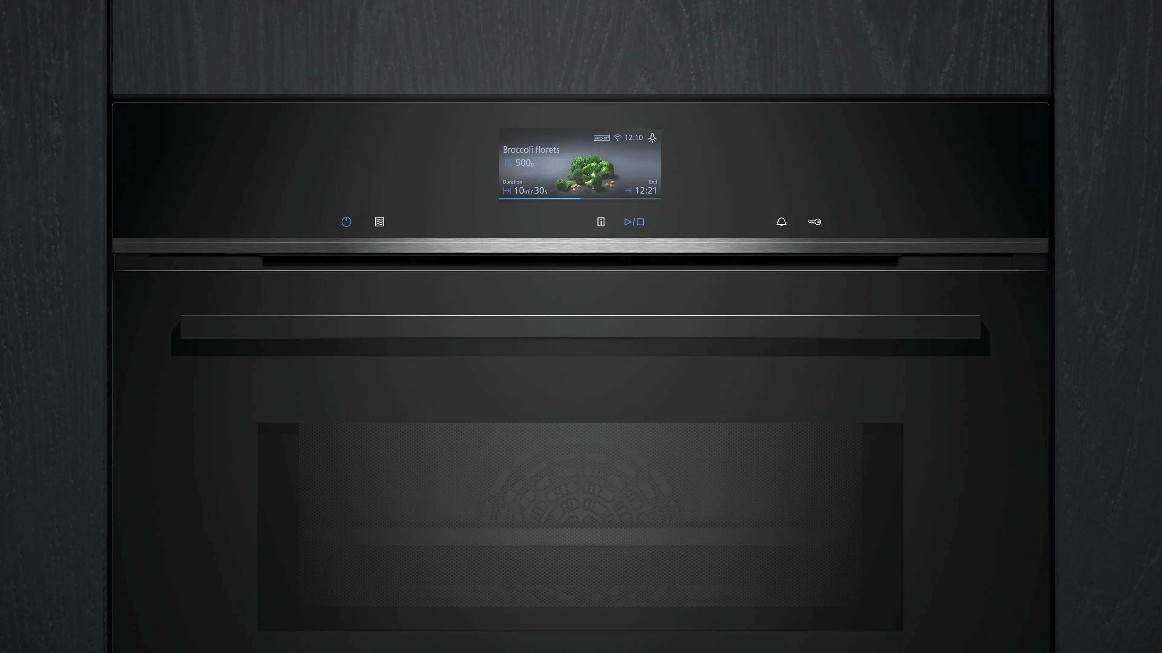 Кольорове виконання в чорному та нержавіючій сталі надає мікроволновій печі елегантного вигляду. Siemens CM776GMB1F – це не просто побутовий прилад, а справжній помічник для сучасної кухні.
