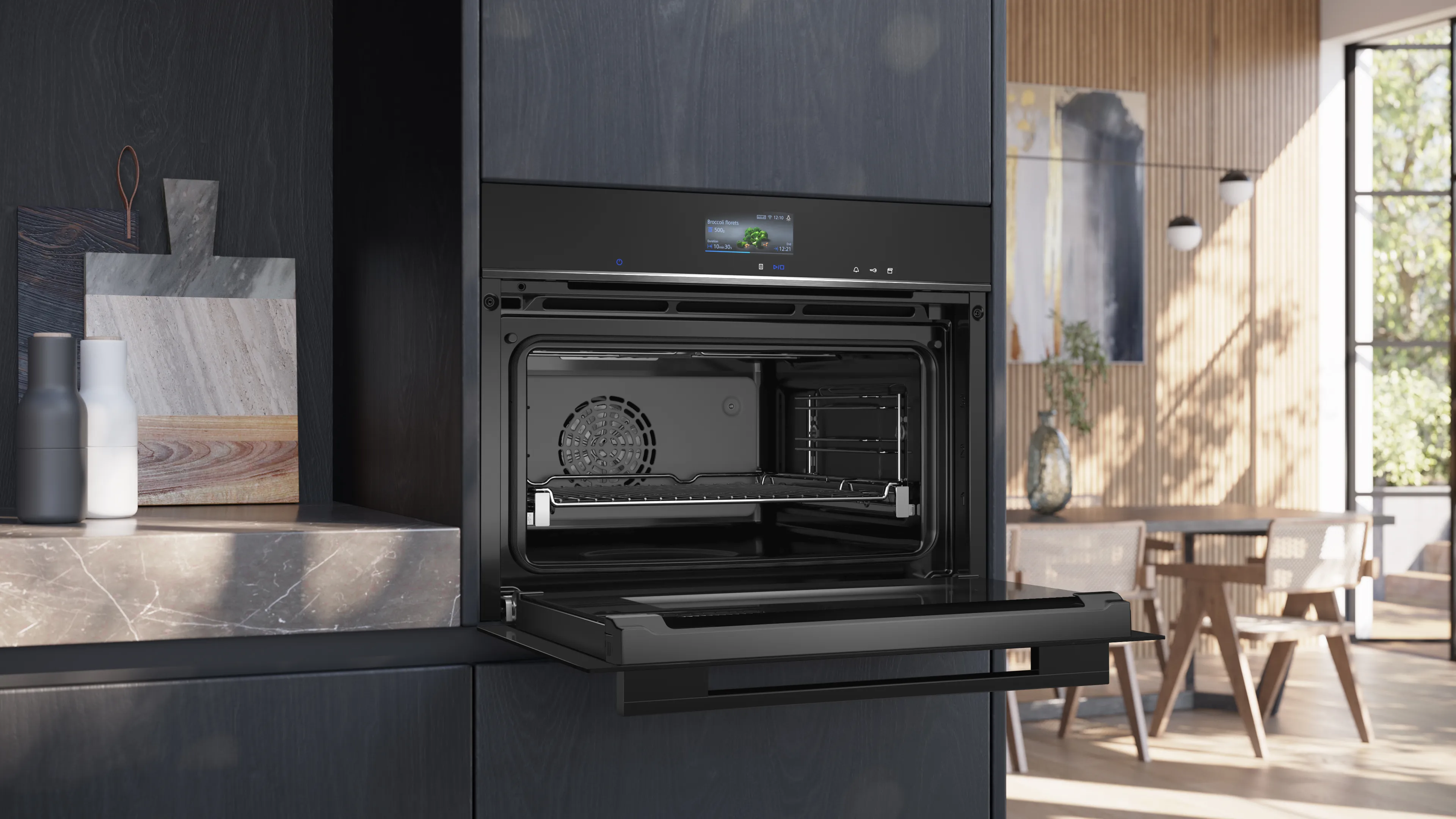 Завдяки гнучко розташованим телескопічним рейкам ви зможете легко виймати страви з духовки. А додатково підтримка Home Connect дає можливість керувати пристроєм через смартфон, що надає ще більше зручності у вашому повсякденному житті.