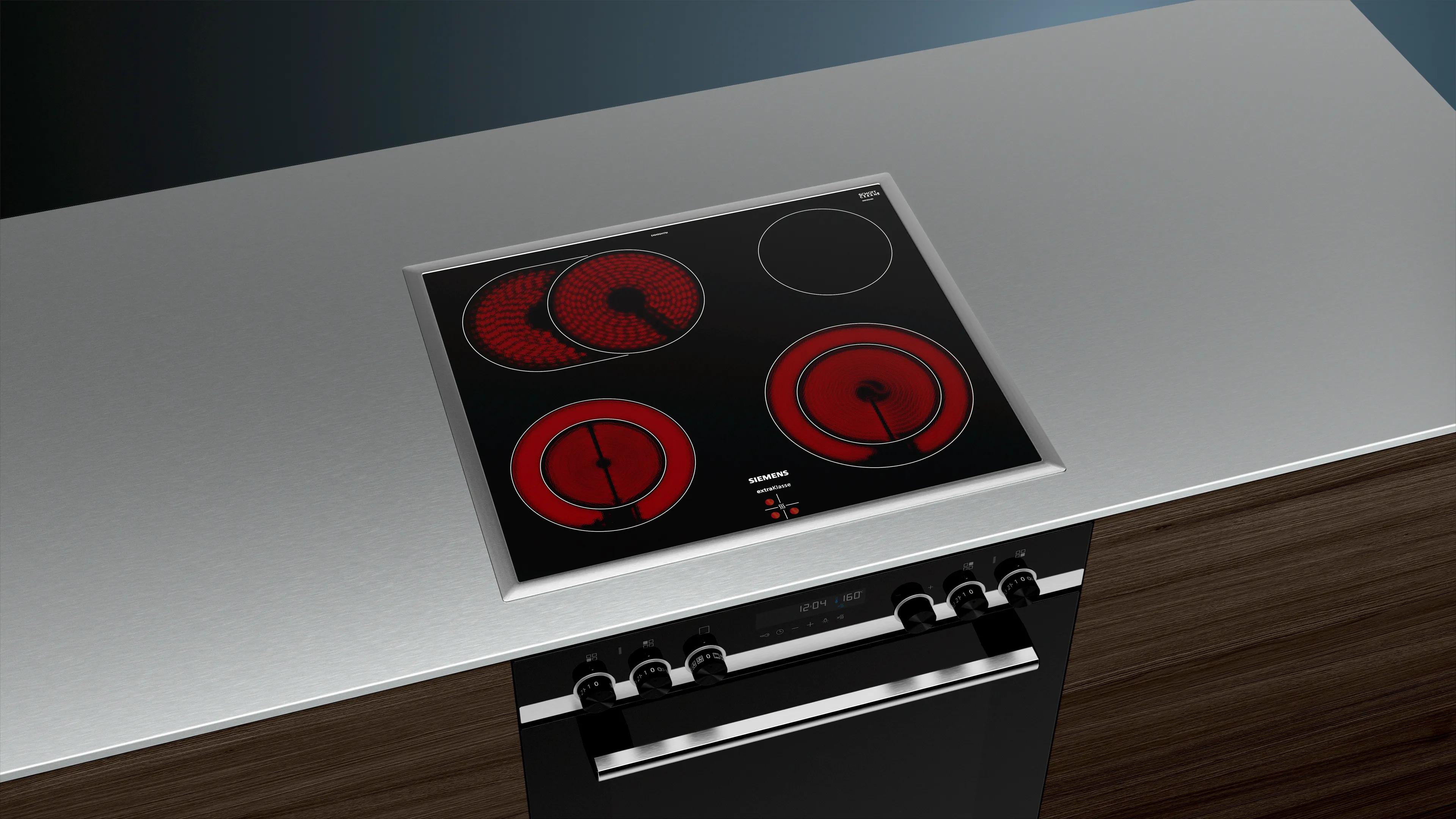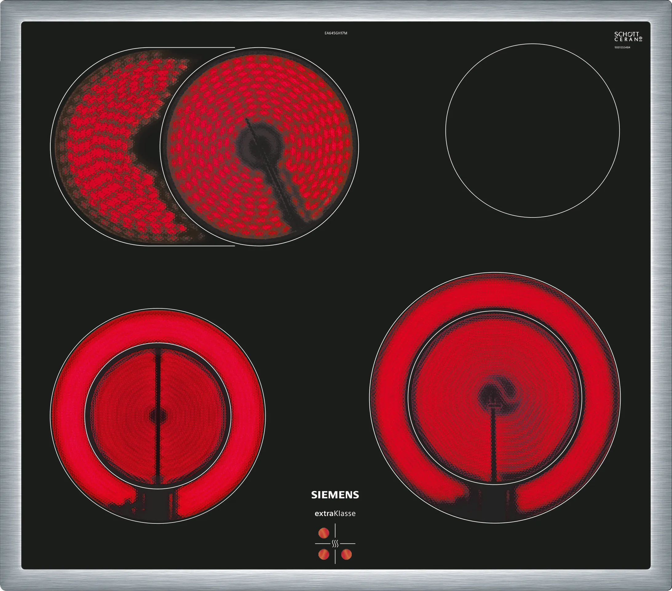 Варочна поверхня Siemens EA645GH17M – це ідеальний вибір для сучасної кухні, що поєднує у собі елегантний дизайн і передові технології. Ця електрична варочна поверхня обладнана чотирма конфорками, які забезпечують високий рівень продуктивності для приготування їжі.
