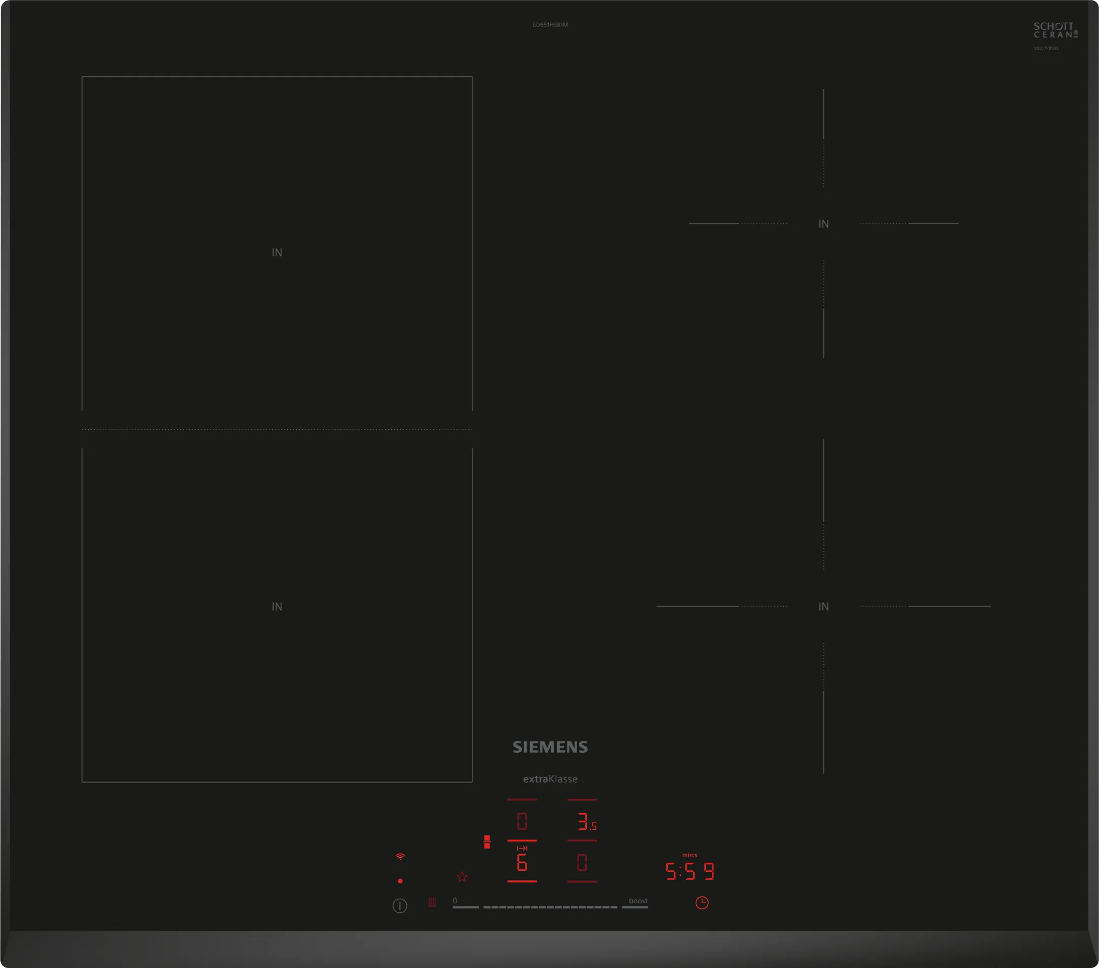 Варочна поверхня Siemens ED651HSB1M — це сучасний пристрій, що забезпечує максимальний комфорт та ефективність приготування їжі. Вона обладнана індукційними зонами, які швидко і рівномірно нагрівають посуд, дозволяючи значно скоротити час приготування. Ця модель має чотири варильні зони, серед яких існує можливість об'єднання для використання довгого посуду.