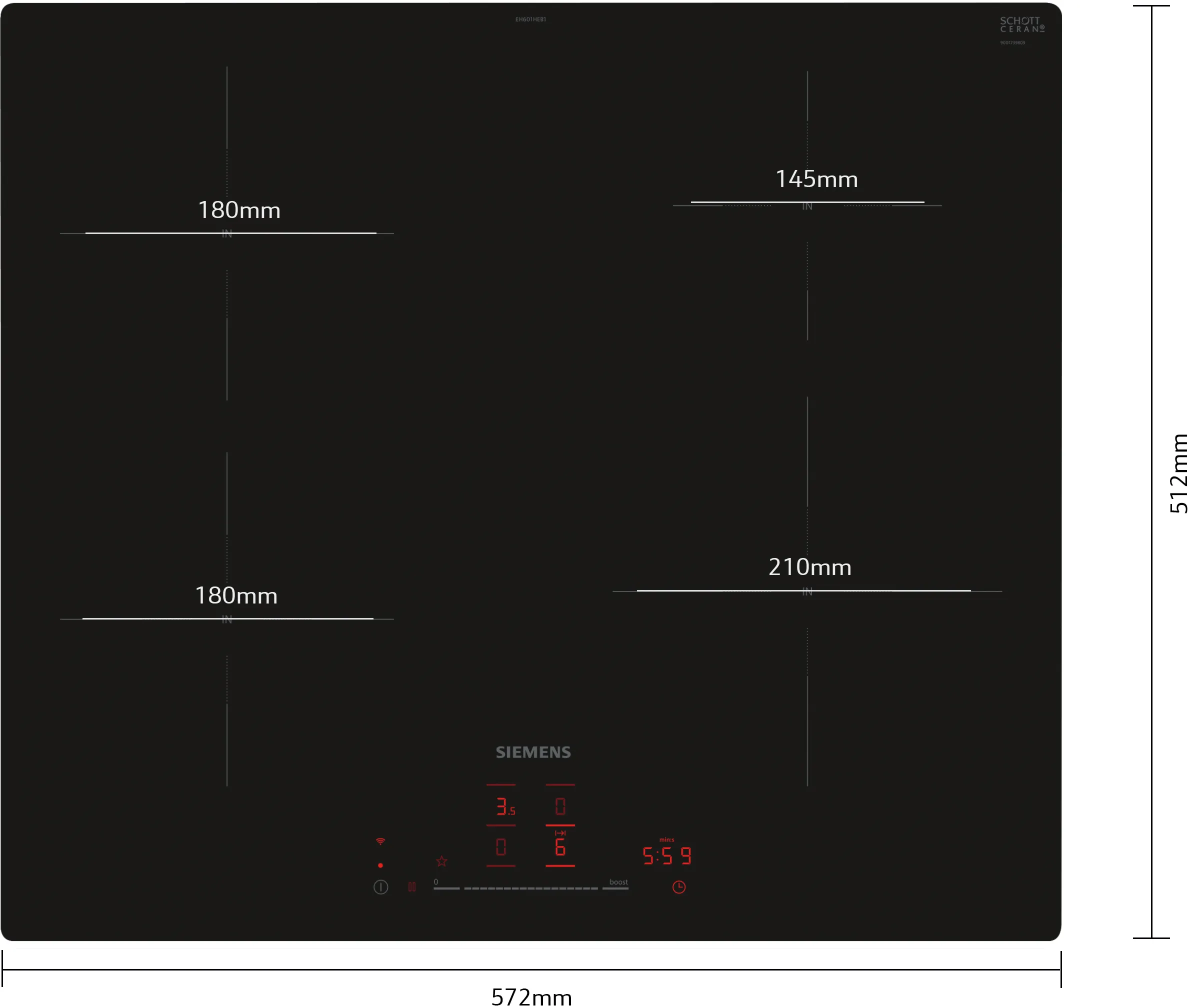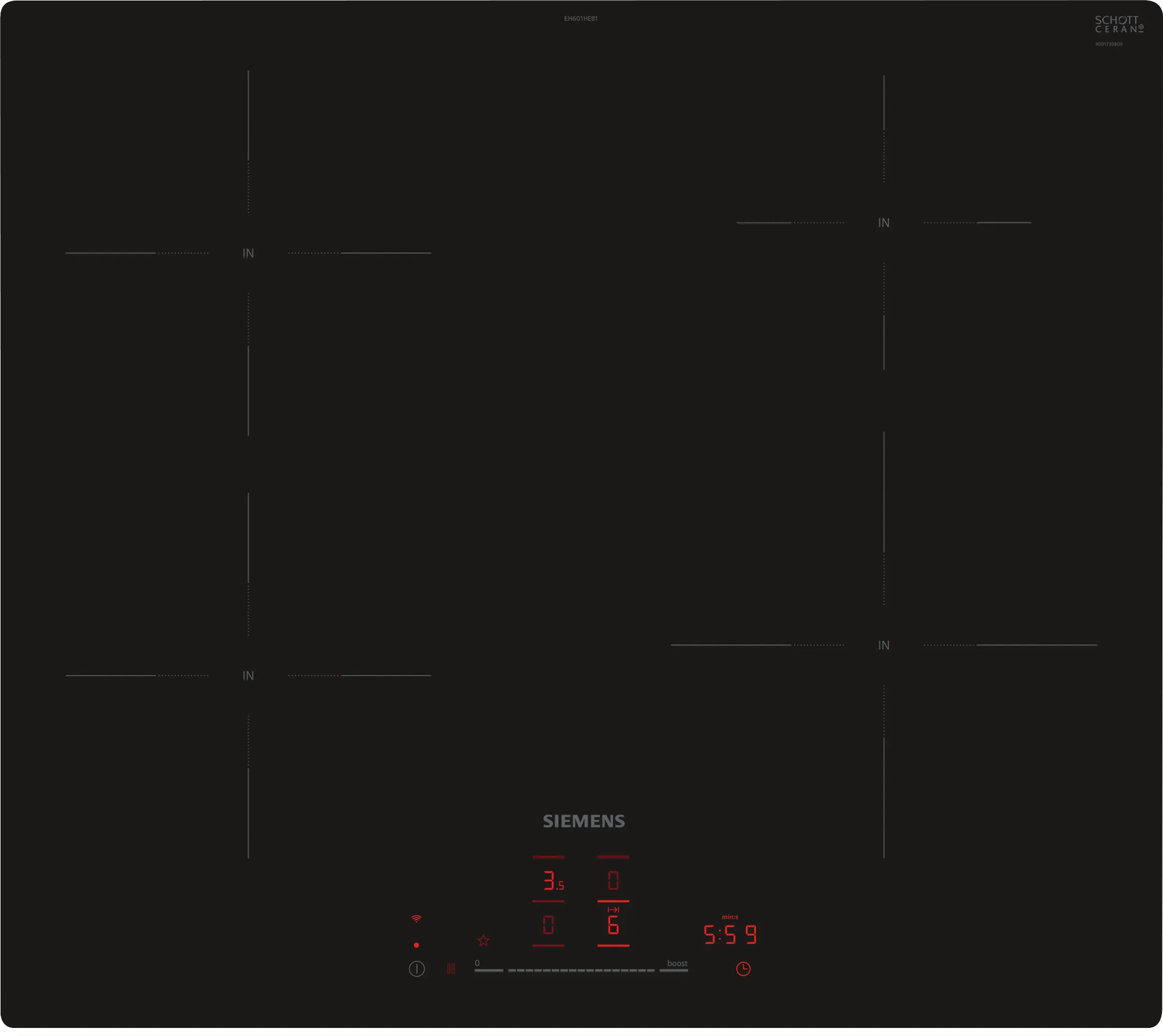 Варочна поверхня Siemens EH601HEB1E - ідеальне рішення для тих, хто цінує якість, технологічність і естетику у своїй кухні. Завдяки своїм інноваційним характеристикам, ви зможете насолоджуватися процесом приготування їжі без зайвих зусиль.