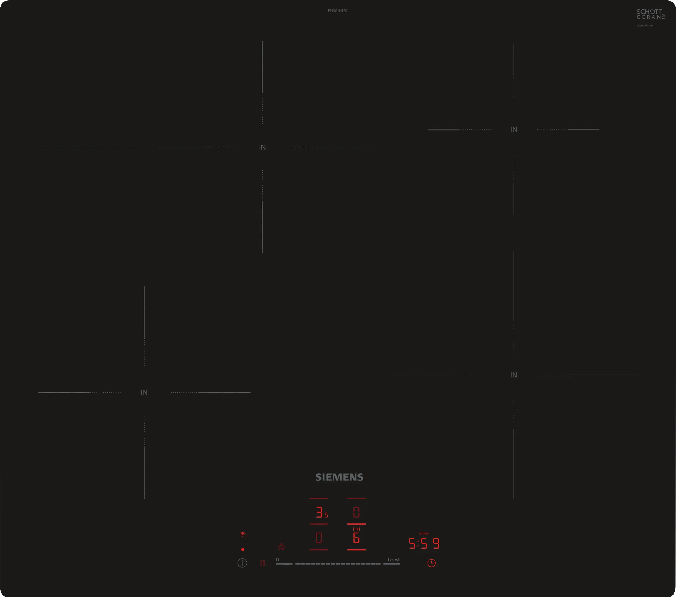 Варочна поверхня Siemens EH601HFB1E — це сучасне індукційне варочне поле, яке стане незамінним помічником на вашій кухні. Завдяки чотирьом кухонним зонам, ви зможете одночасно приготувати кілька страв, підвищуючи ефективність та швидкість процесу готування.