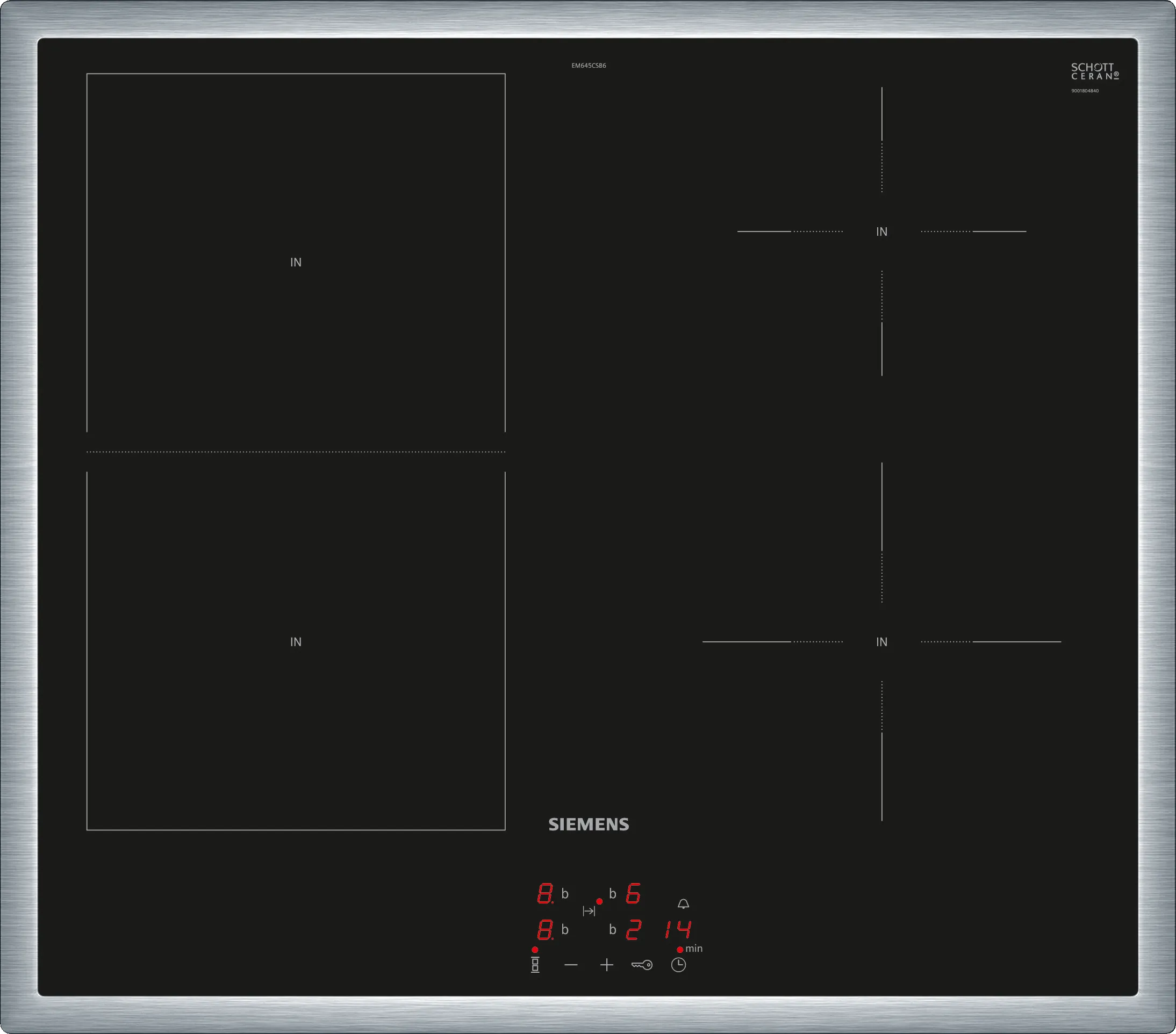 Варочна поверхня має стандартний рамковий дизайн, що дозволяє їй легко вписуватись в будь-який інтер'єр кухні. Пам'ятайте, що підключення займається лише кваліфікованим електриком, тому безпека використання гарантована. Siemens EM645CSB6E — це надійна та стильна варочна поверхня, яка стане незамінним помічником у вашій кухні.
