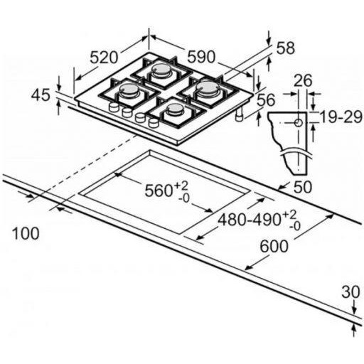 Окрім того, варильна поверхня оснащена газ-контролем та електрозапалюванням, що підвищує безпеку під час приготування. Компактні розміри (ширина 59 см і глибина 52 см) дозволяють розміщувати панель у невеликих кухнях, не втрачаючи при цьому функціональності.