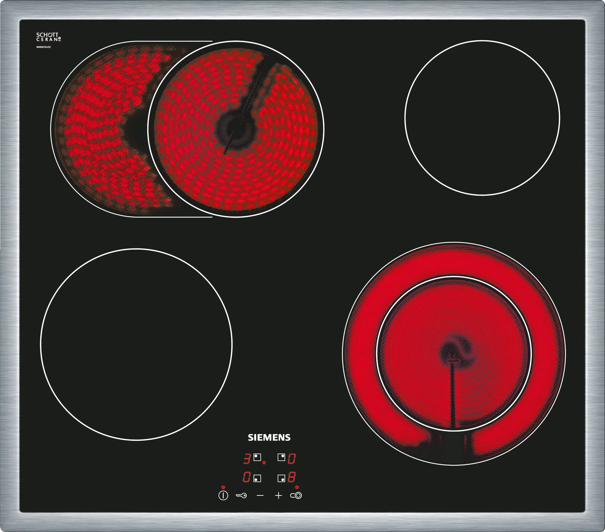 Варочна поверхня Siemens ET645HN17E - це високоякісний електричний кухонний прилад, який спростить приготування ваших улюблених страв. Дана модель має чотири зон нагріву, що дозволяє одночасно готувати кілька страв, заощаджуючи ваш час на кухні. Одна з зон є двокіцевою, що забезпечує додаткову гнучкість у виборі розміру плити під ваші каструлі та сковороди.