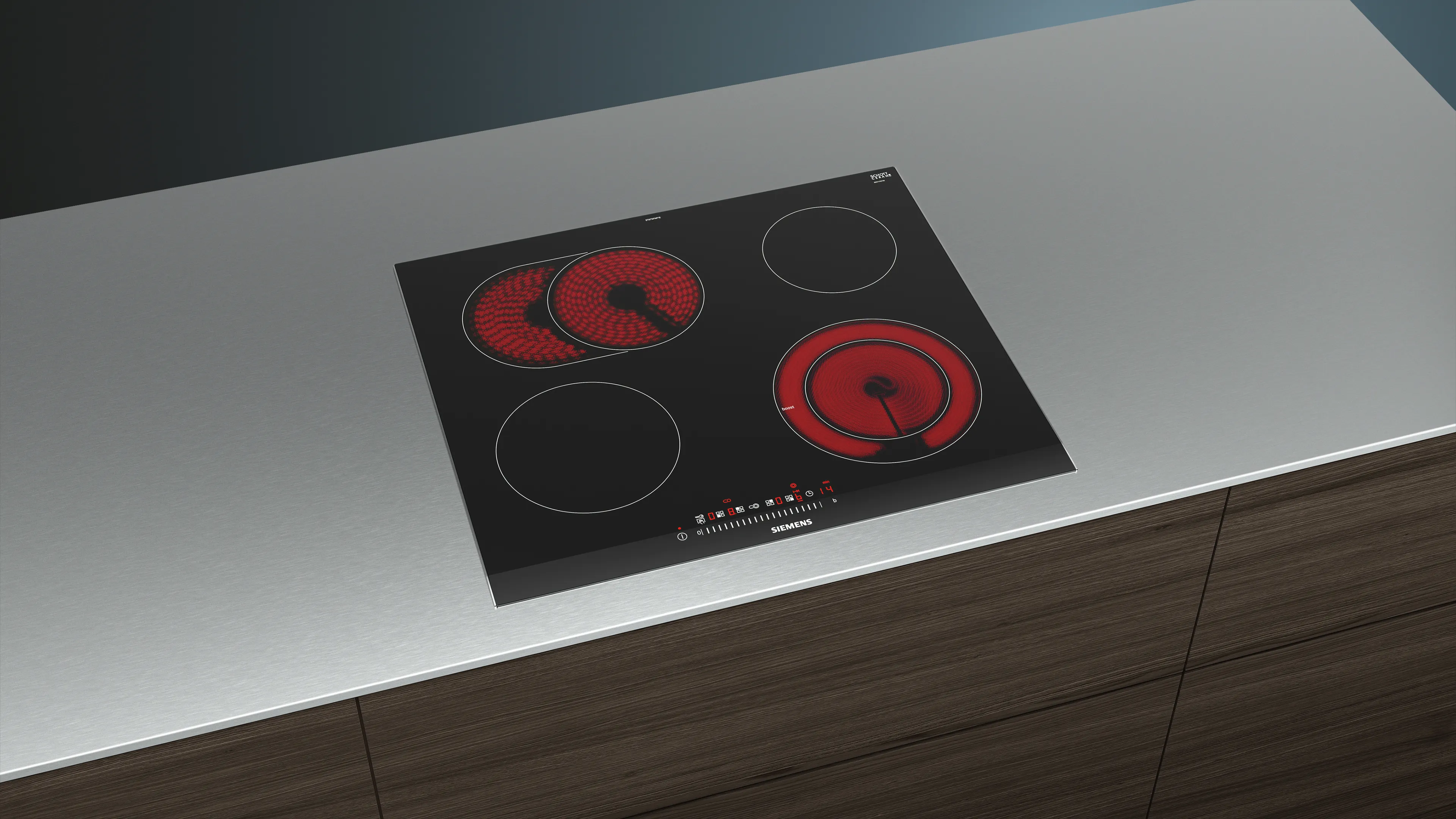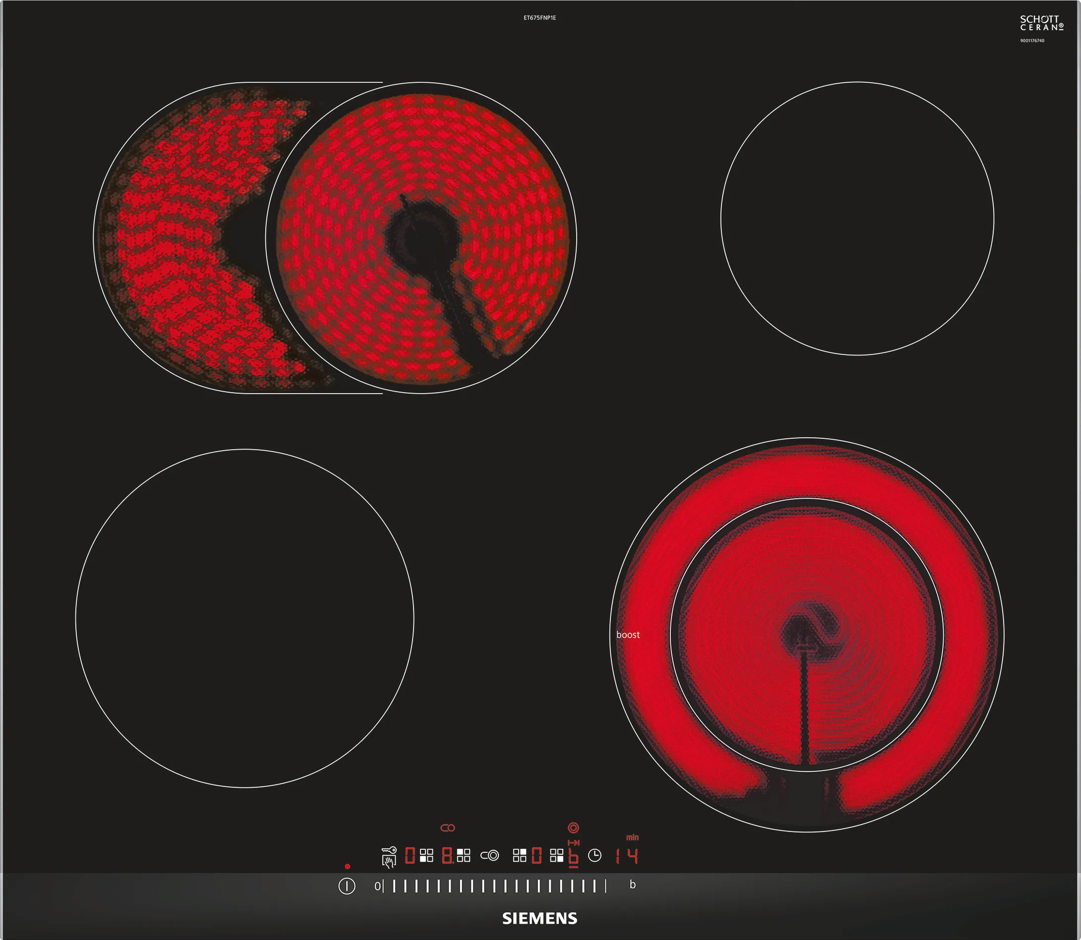 Варочна поверхня Siemens ET675FNP1E — це сучасне рішення для кухні, яке поєднує в собі стиль та функціональність. Ця електрична плита має чотири гнучкі зони нагріву, що забезпечує максимальну свободу приготування їжі. Серед них ви знайдете двобічну зону нагріву та спеціальну зону для великих каструль.
