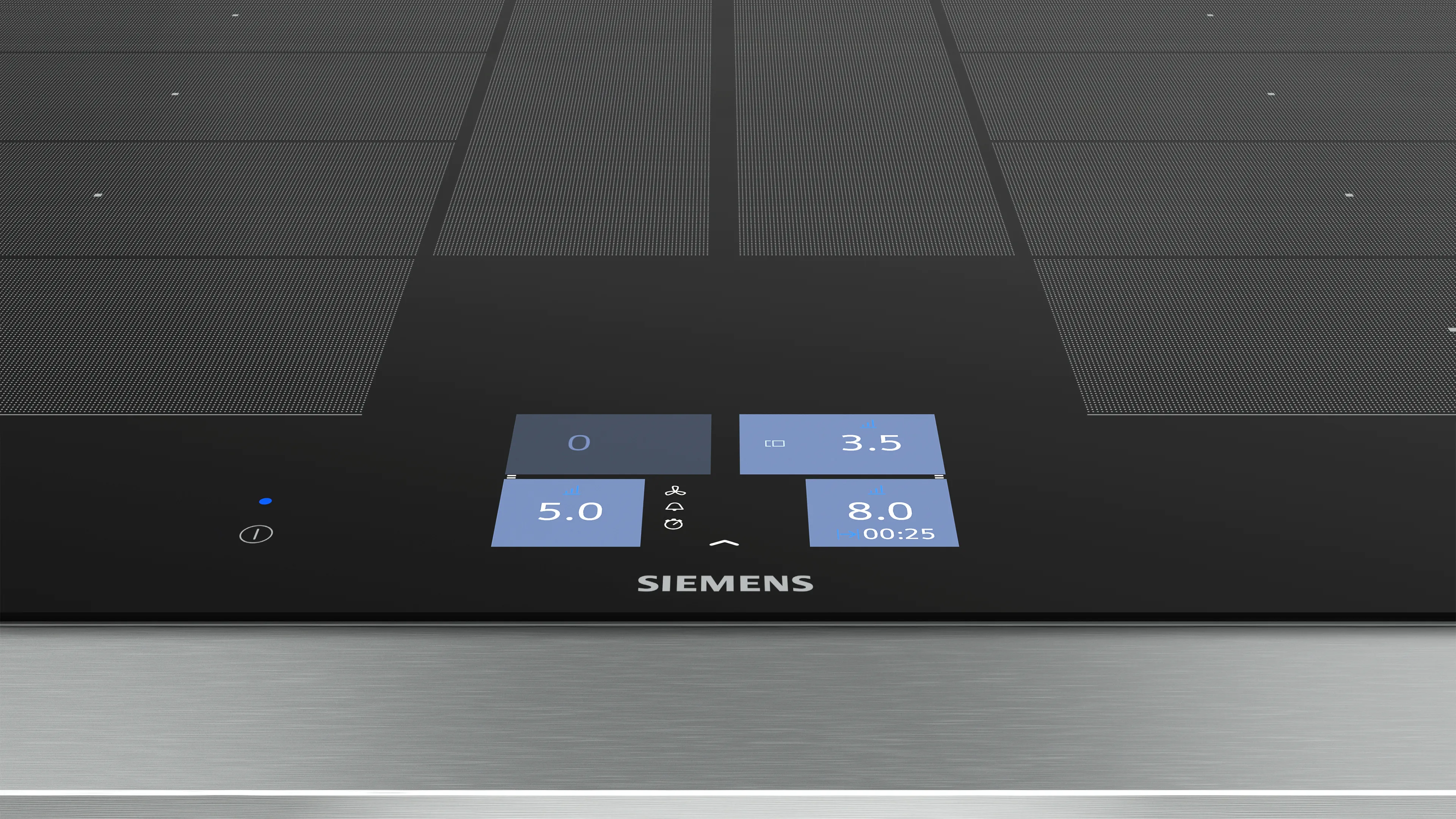 Siemens EX875KYW1E не потребує нестандартної електричної проводки, адже не має вбудованої вилки і підключається безпосередньо електриком. Крім того, ця модель підтримує технологію Home Connect, що дозволяє контролювати варильну поверхню з мобільного пристрою, отримуючи оновлення та нові функції для покращення інтуїтивного використання.
