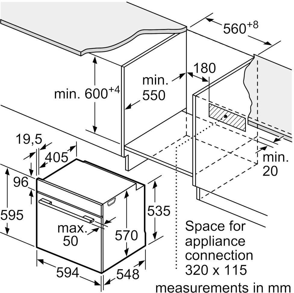 Духова шафа забезпечена цифровим таймером, що спростить контроль процесу приготування. Її розміри — 59,5х59,4х54,8 см — ідеально підходять для вбудованого монтажу, що забезпечує сучасний вигляд інтер'єру кухні. Колір пристрою — стильний чорний, що надає йому елегантності.