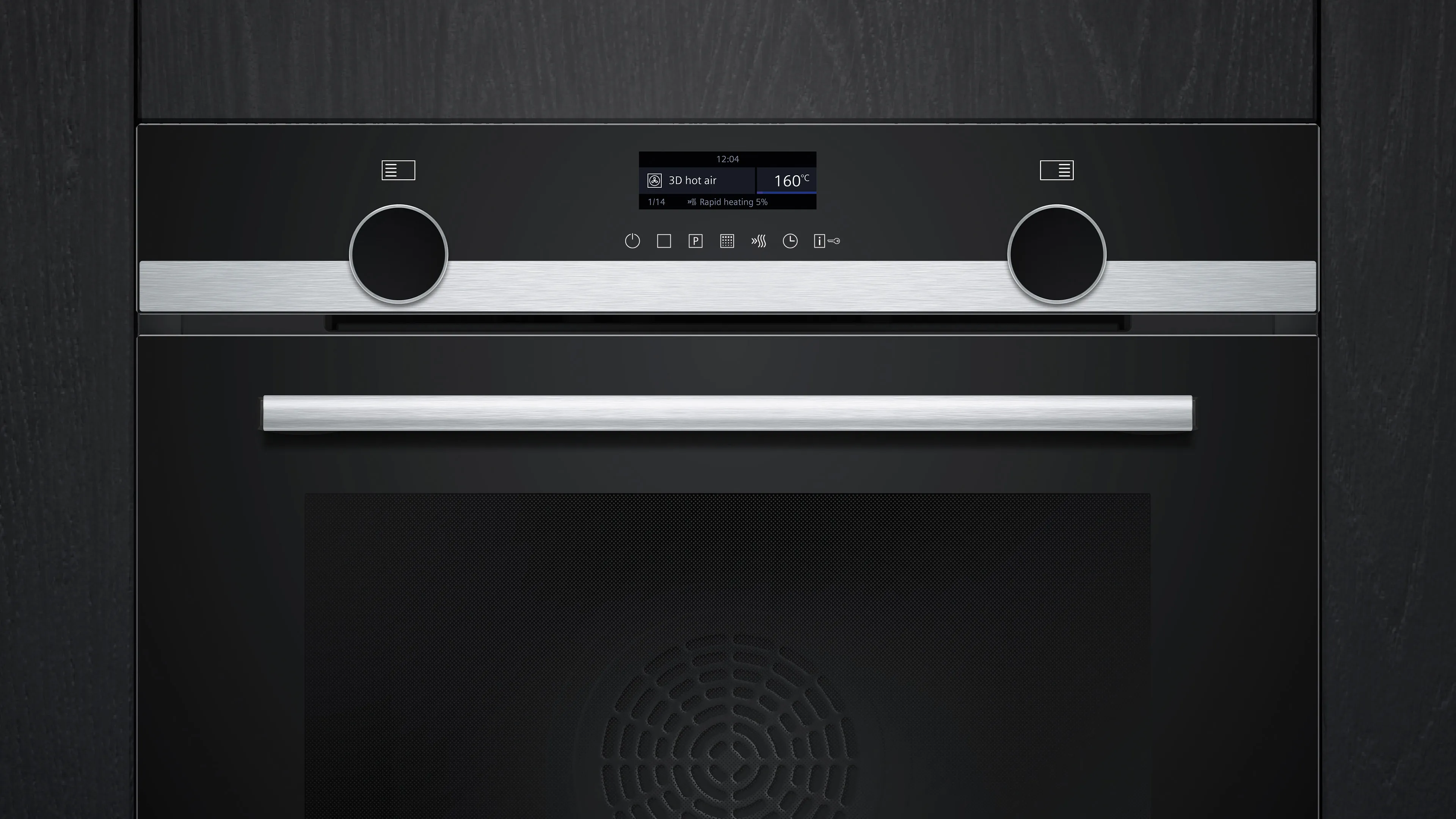 Для зручності використання в HB579GBR3 передбачено максимально просте управління через поворотний диска, що дозволяє вам швидко вибрати потрібну функцію. Крім того, модель має можливість підключення до мобільного додатку Home Connect, що відкриває нові можливості для управління приготуваннями через ваш смартфон.