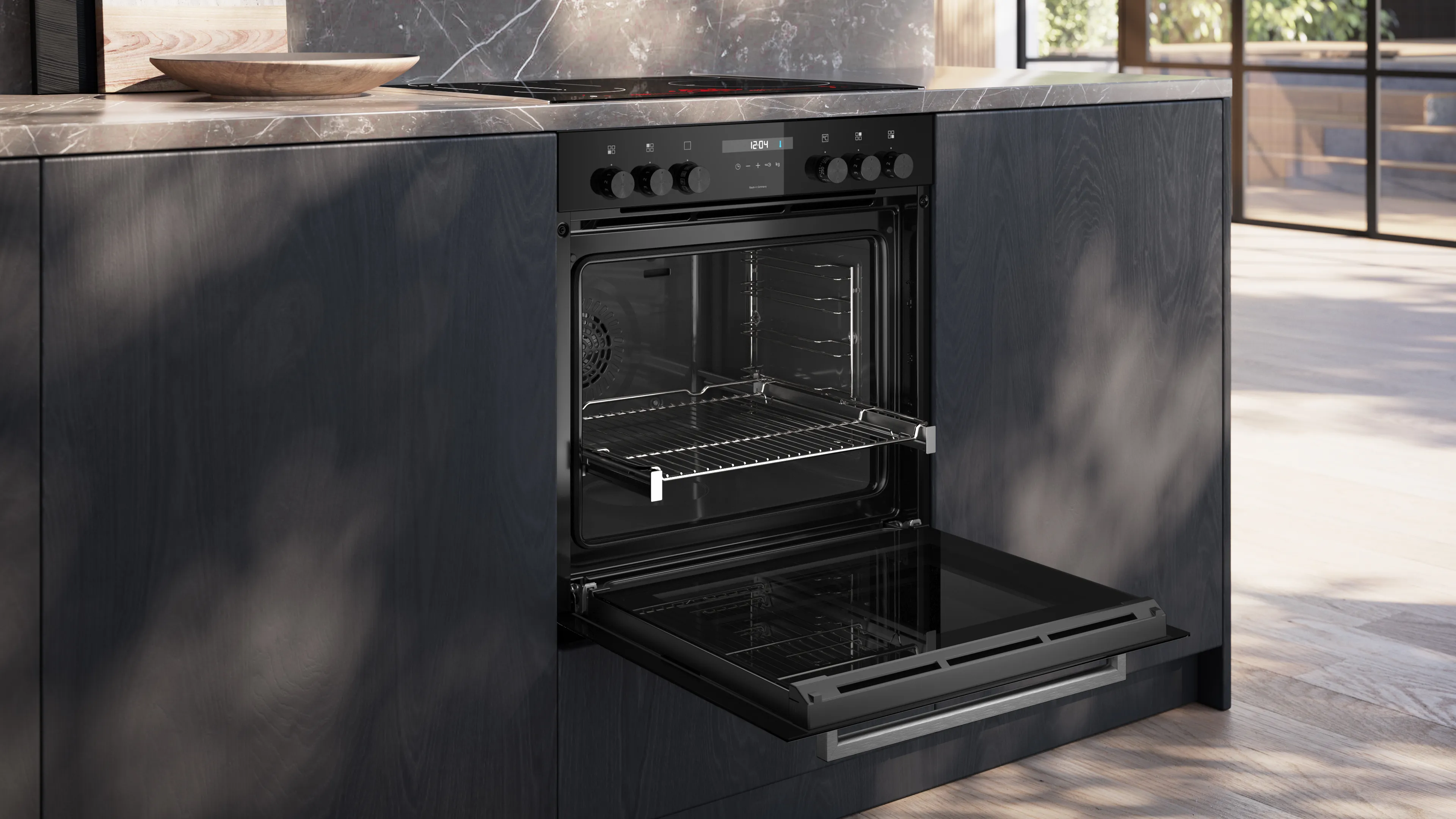 Піч оснащена білим LCD-дисплеєм з ергономічною ручкою, що дозволяє легко налаштовувати програми приготування. Однією з ключових особливостей є інтегроване гідролітичне очищення, що значно спрощує підтримку чистоти в середині пристрою.