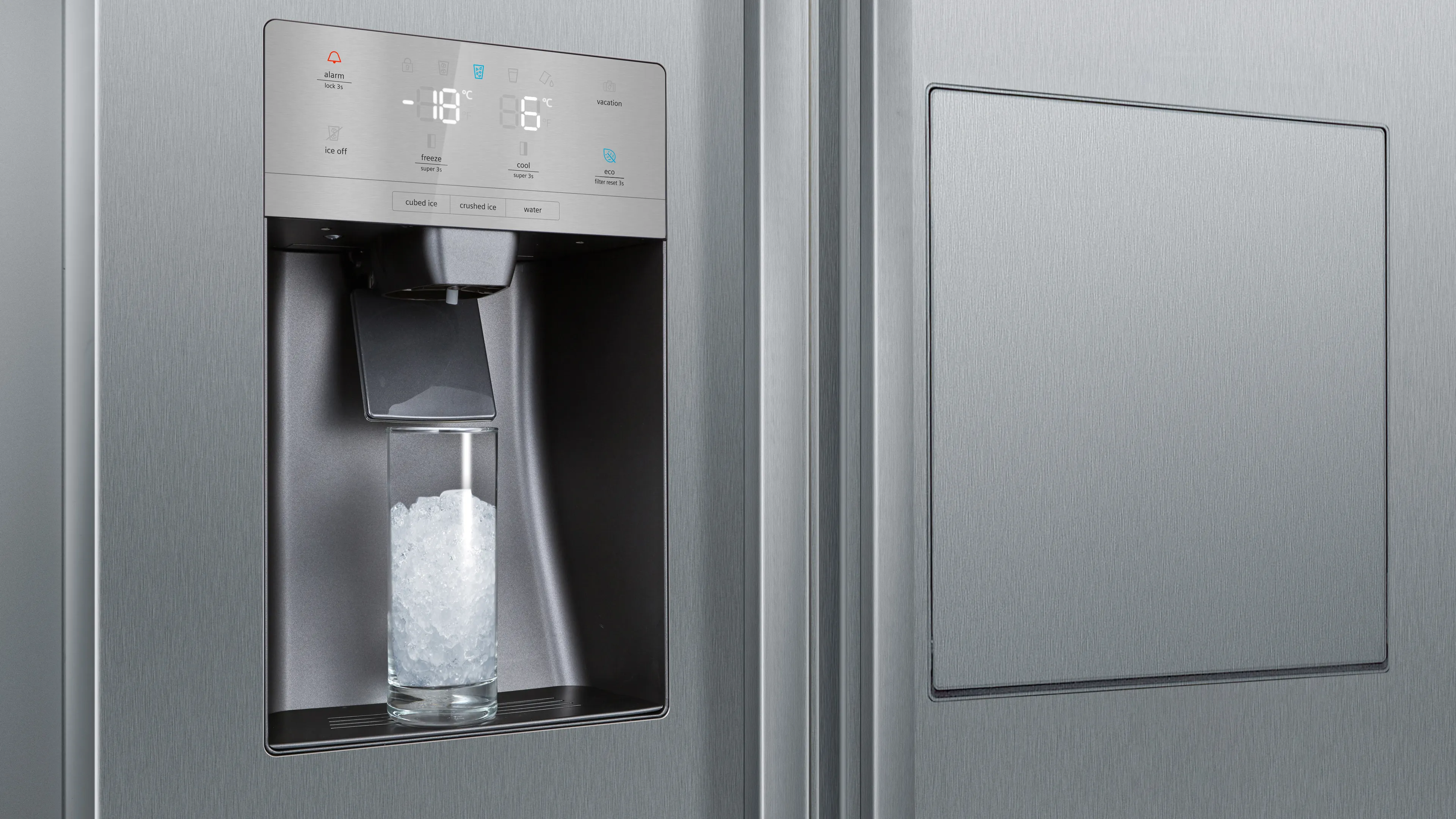 Ця модель виконана в елегантному нержавіючому сталі з ефектом антифірінг, що запобігає появі відбитків пальців на поверхні. Вона оснащена системою Total NoFrost, що забезпечує автоматичне відтавання, спрощуючи догляд за холодильником та запобігаючи утворенню льоду.