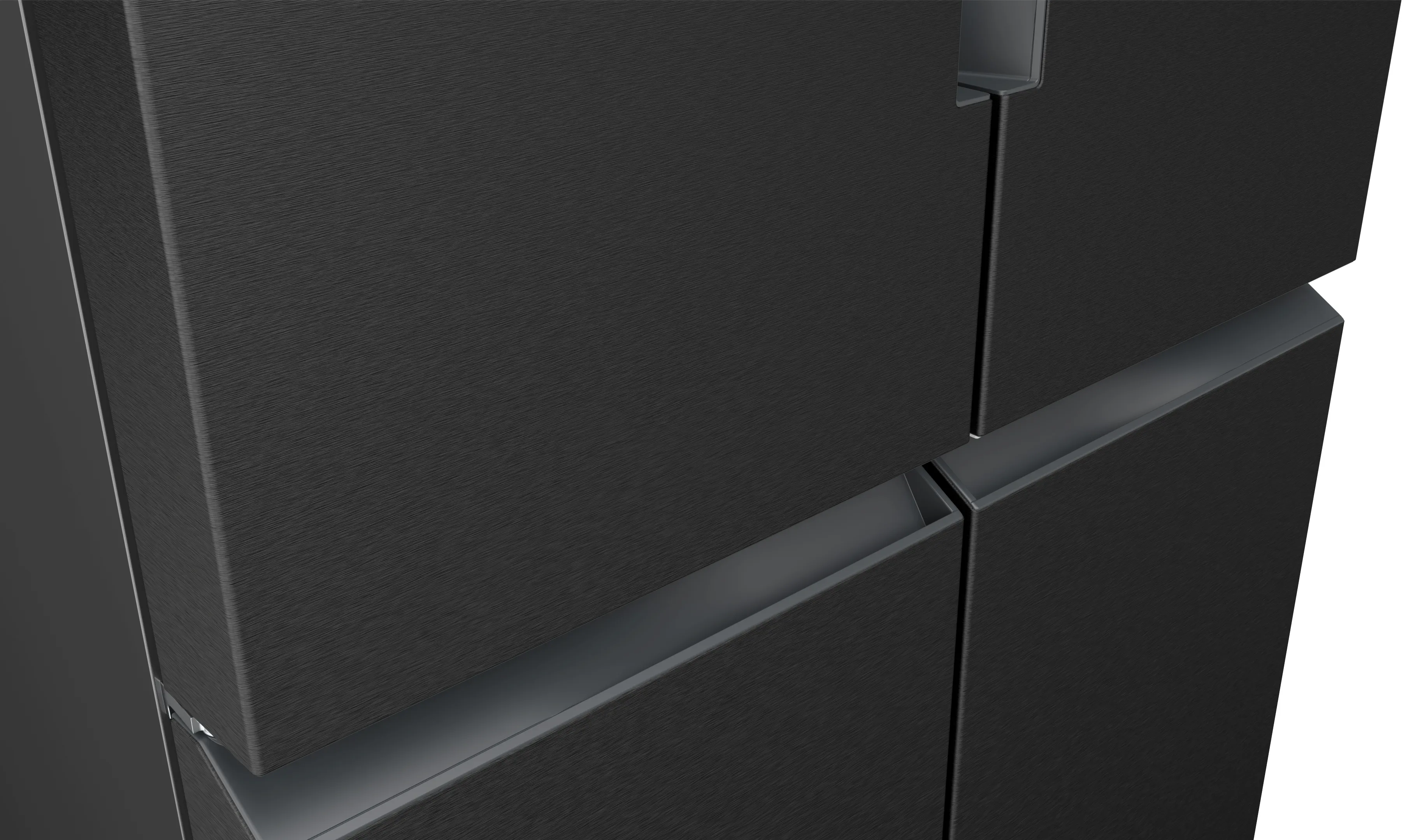 Цей холодильник має високу енергетичну ефективність класу A, що дозволяє знизити витрати на електроенергію. З зовнішнім виконанням з матового чорного сталі та технологією AntiFingerprint, холодильник завжди виглядає бездоганно, не накопичуючи слідів пальців.