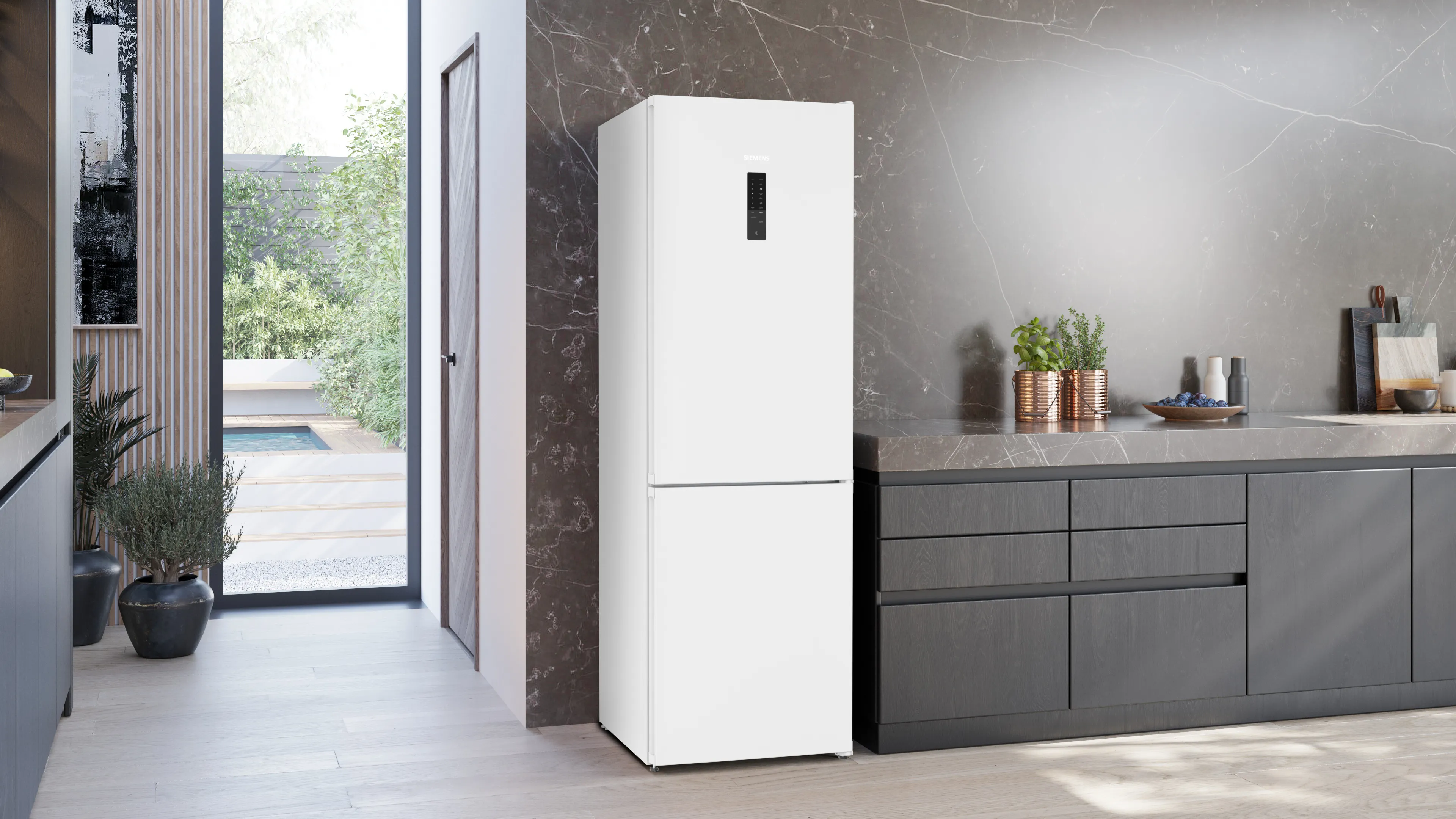 Холодильник обладнаний інноваційною системою hyperFresh Plus, яка допомагає зберігати свіжість овочів та фруктів до 2 разів довше, а також просторою полицею hyperFresh bigBox для зберігання великих продуктів. Крім того, у вас буде можливість підключити холодильник до системи Home Connect, що дозволяє здійснювати контроль і налаштування через смартфон.