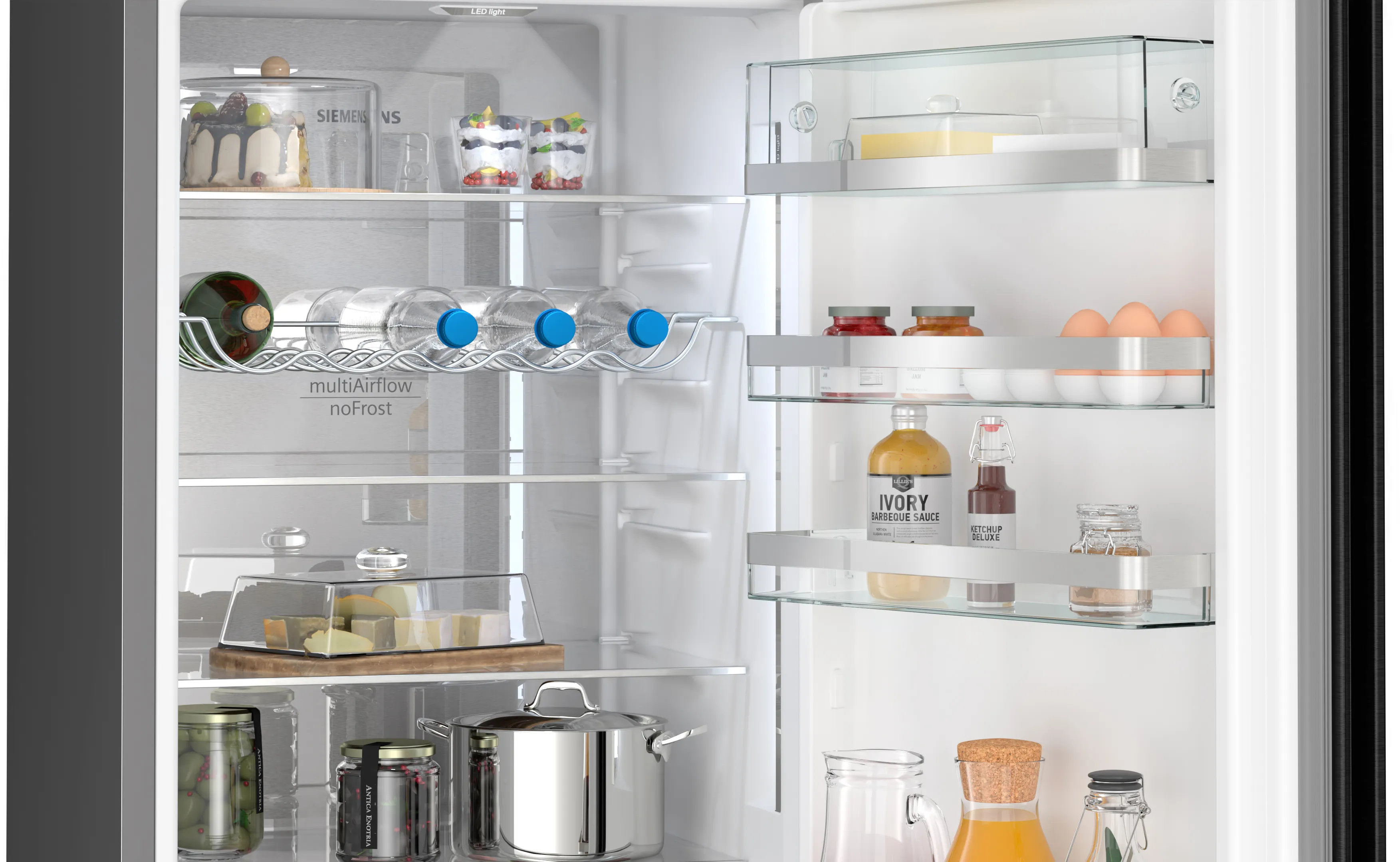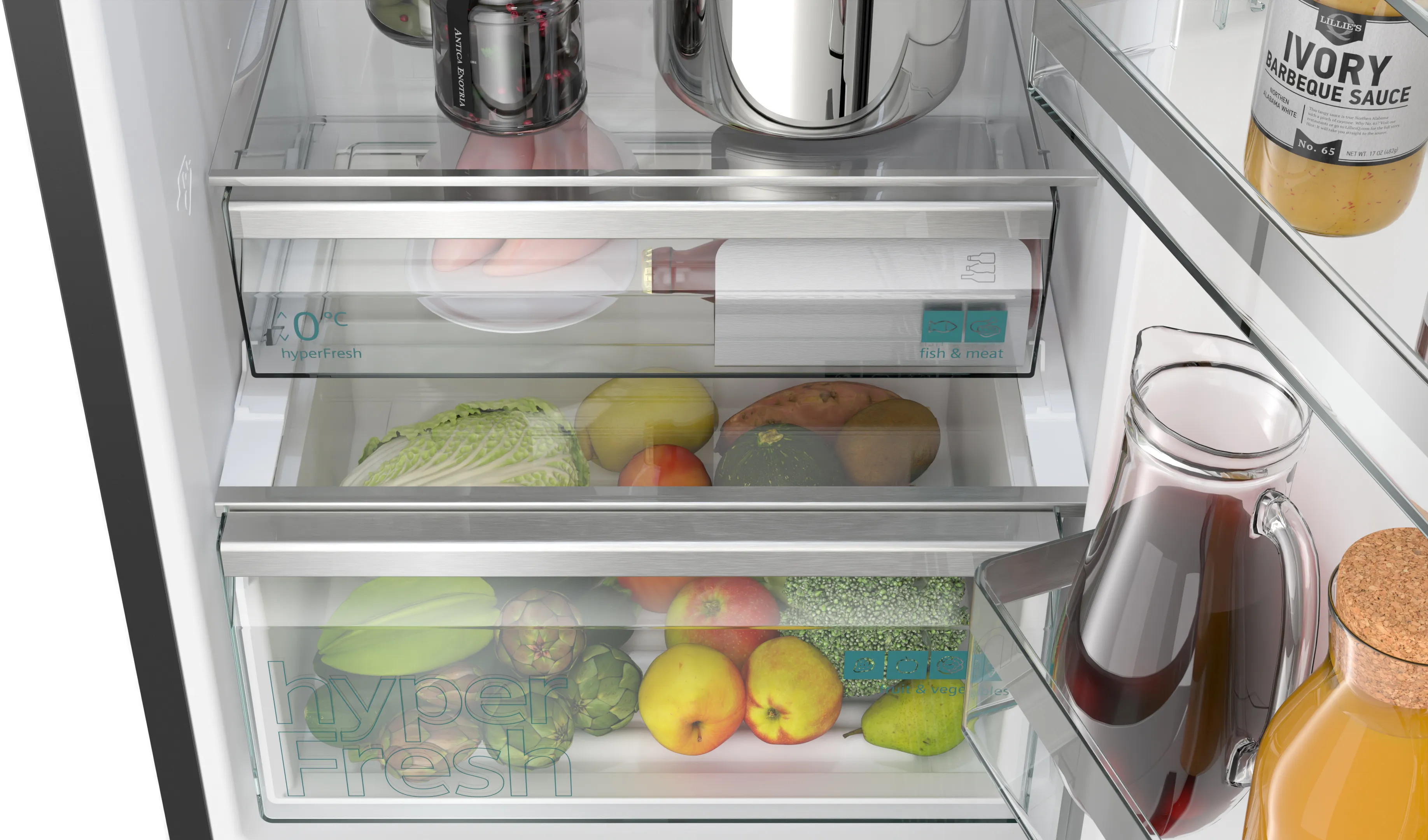 Модель має великий корисний об’єм, що робить її ідеальним варіантом для чотирьох-п’ятичленних сімей. З hyperFresh bigBox ви зможете зберігати великі продукти чи великі кількості їжі без зайвого клопоту.