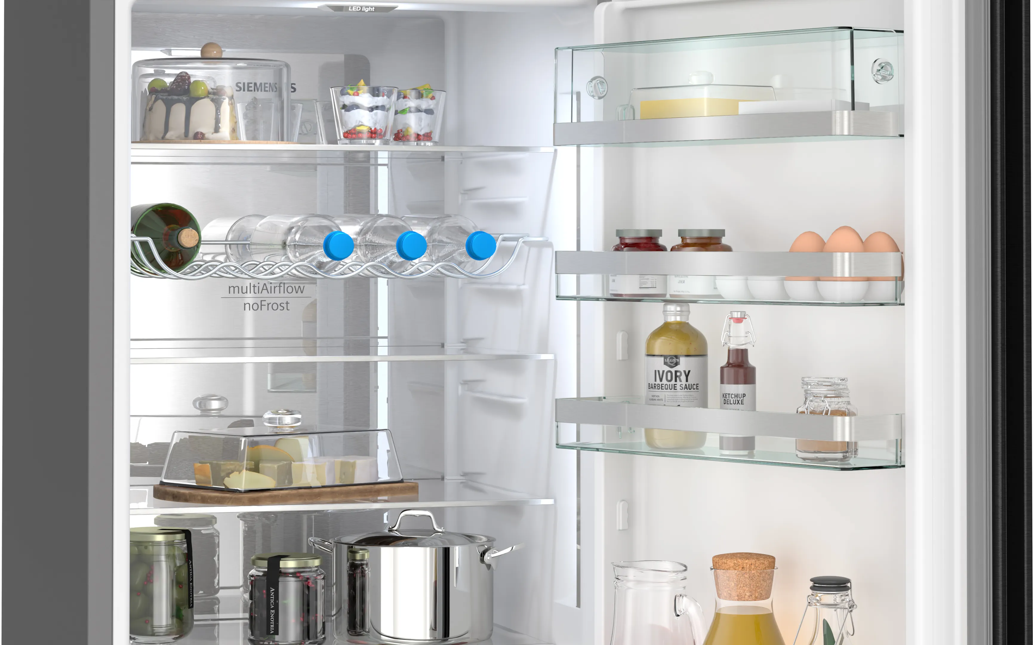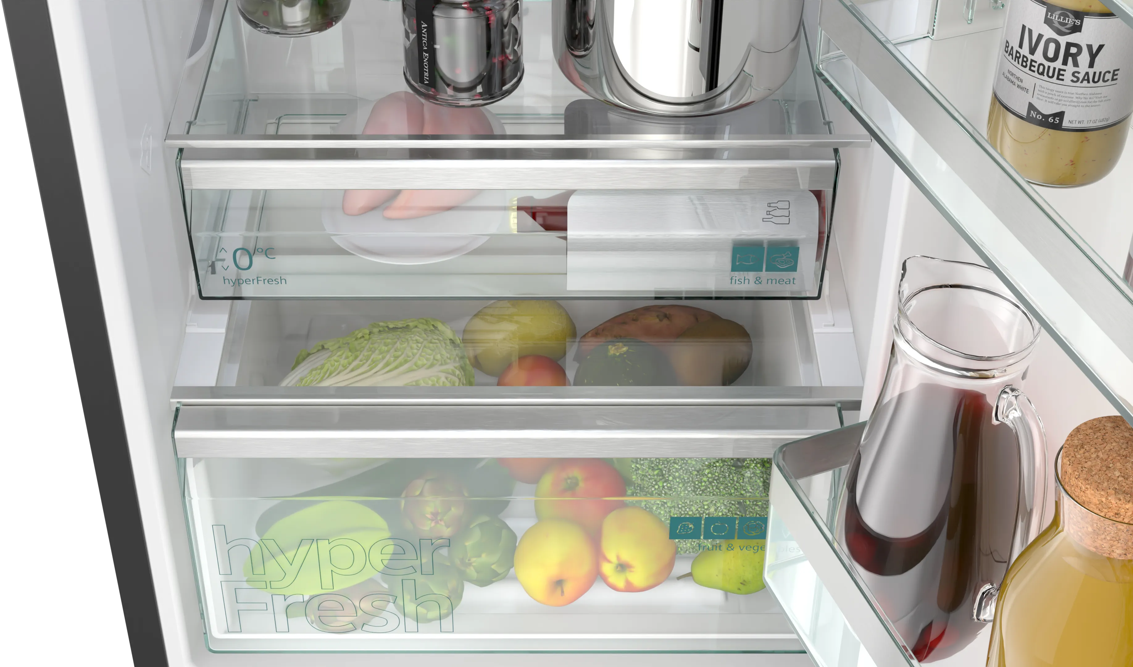 Холодильник також включає в себе систему свіжості hyperFresh plus і простір hyperFresh bigBox, які допомагають зберігати фрукти та овочі свіжими на тривалий час. Маючи можливість підключення до Home Connect, ви зможете управляти пристроєм дистанційно, отримувати оновлення та насолоджуватися всіма перевагами смарт-технологій.