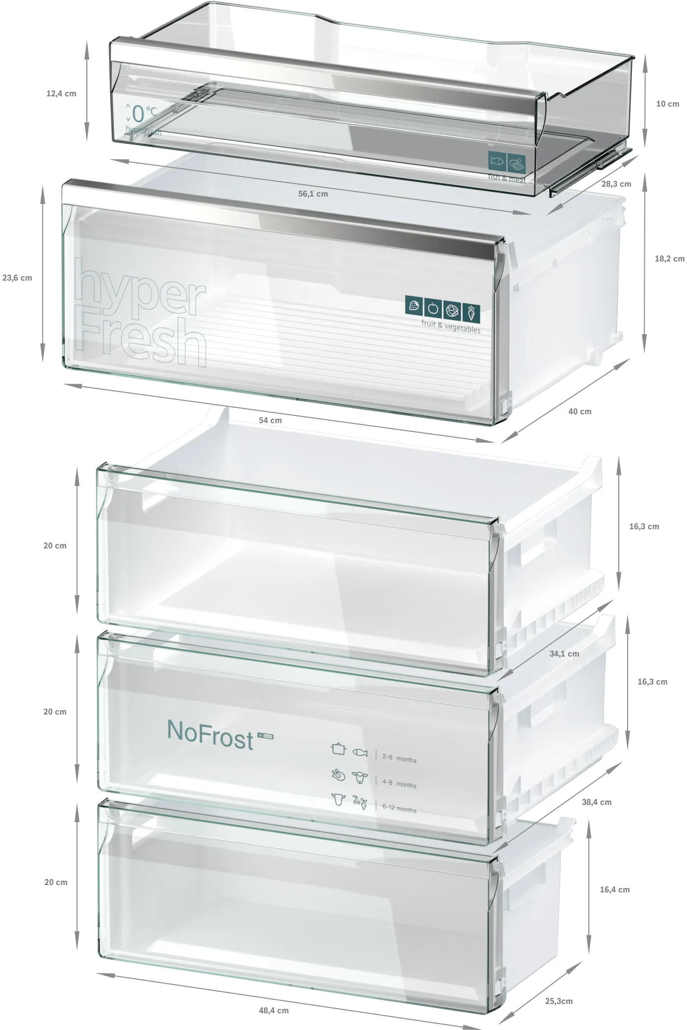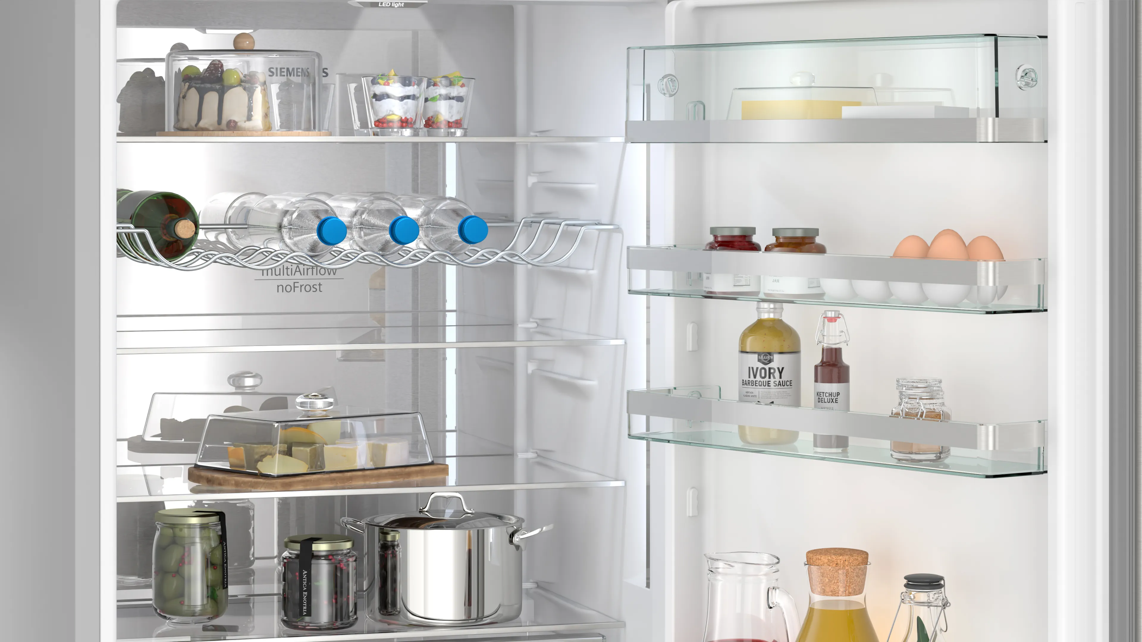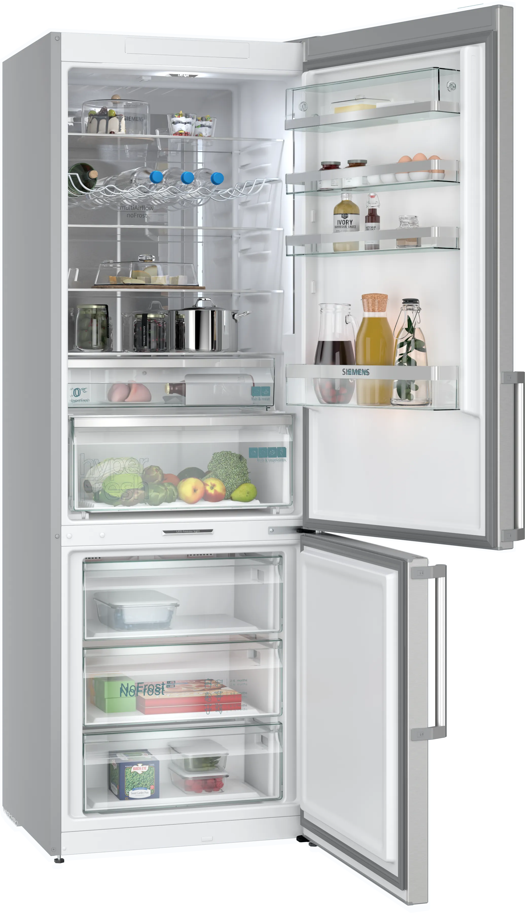З рівнем шуму всього 35 дБ(A), холодильник працює тихо, що робить його ідеальним вибором для будь-якої кухні. Система охолодження hyperFresh Plus забезпечує довготривале збереження продуктів, підтримуючи їх свіжість на максимальному рівні. Додатково, наявність великої hyperFresh bigBox здберігає великий обсяг продуктів, які потребують зберігання в оптимальних умовах.