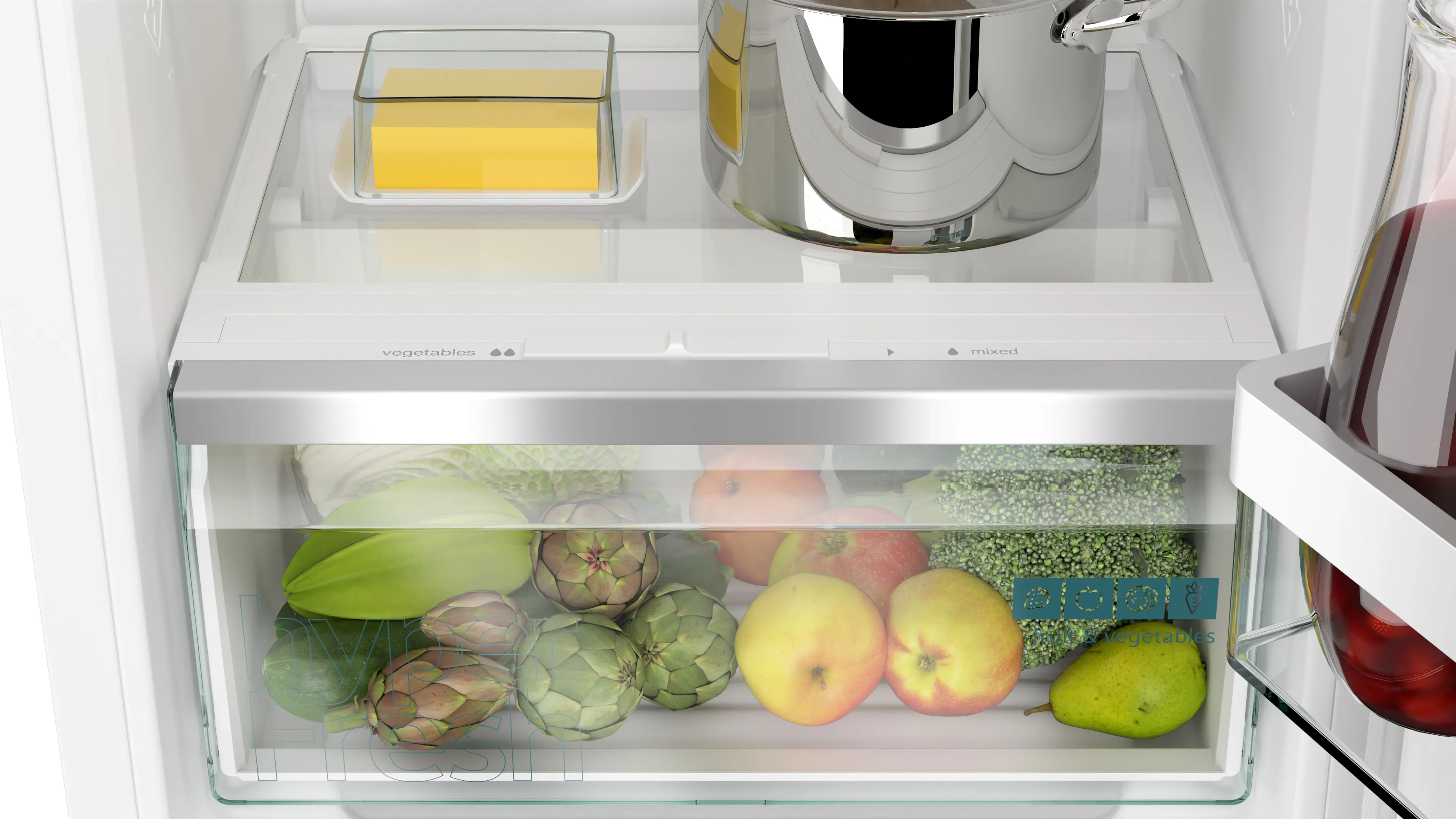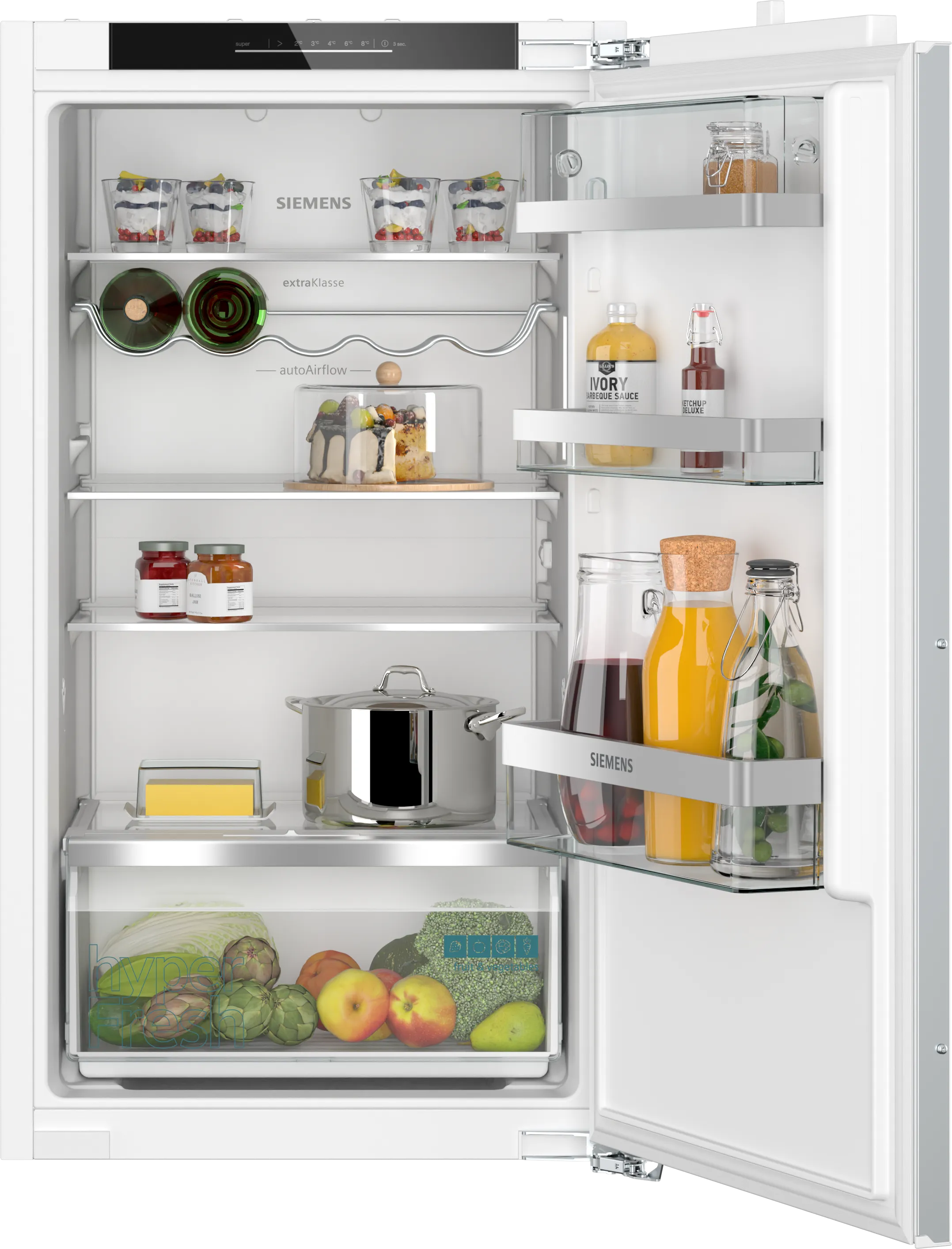 Однією з основних переваг цього холодильника є інноваційна система hyperFresh, яка забезпечує оптимальні умови для зберігання свіжих продуктів, продовжуючи їх термін придатності. Ви можете бути впевнені, що фрукти та овочі залишаться свіжими довше. Також, завдяки вбудованій технології Home Connect, ви можете управляти приладом з будь-якої точки світу за допомогою смартфона, отримуючи інформацію про стан холодильника та можливість отримання оновлень програмного забезпечення.