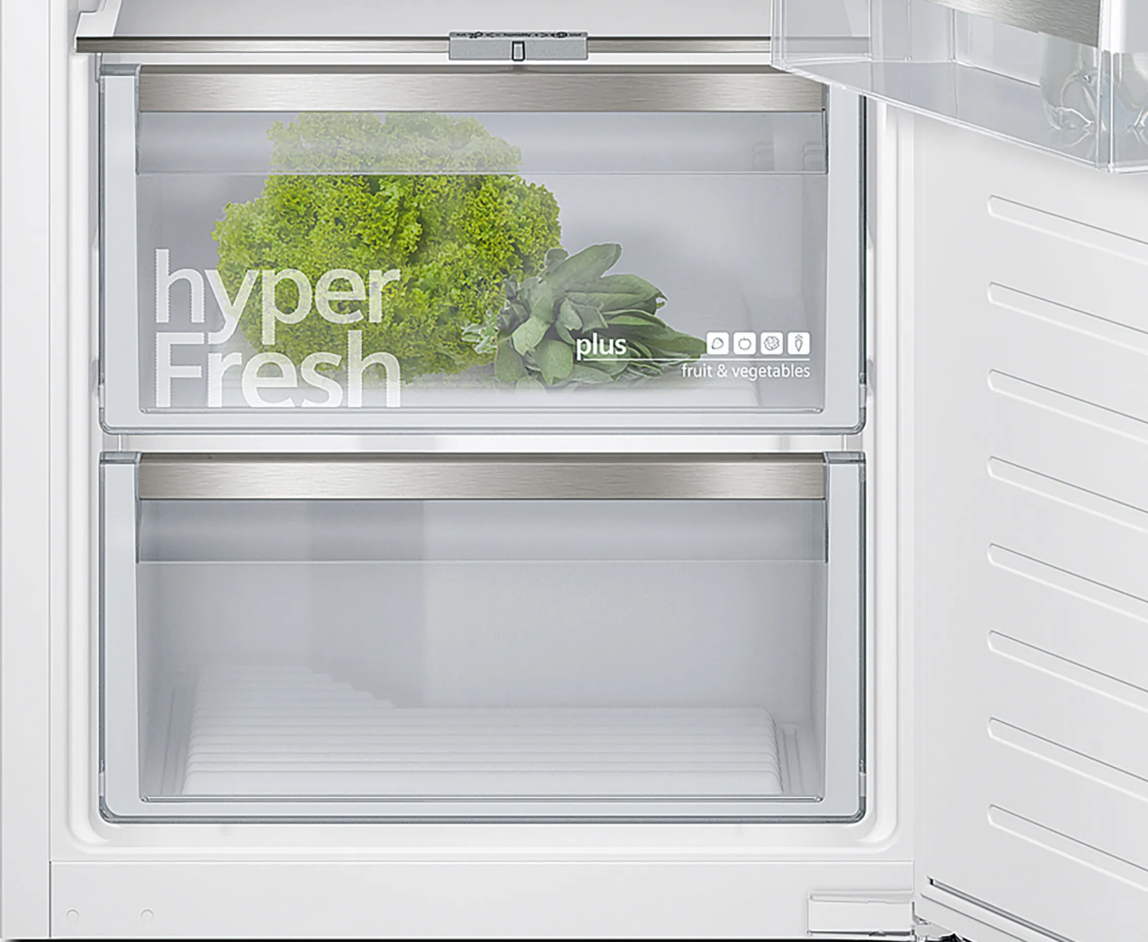 Холодильник оснащений інноваційною технологією hyperFresh Plus, яка дозволяє зберігати продукти свіжими набагато довше. Ця система забезпечує оптимальні умови для зберігання фруктів і овочів, дозволяючи насолоджуватися їх смаком і поживністю без шкоди для якості. Завдяки Home Connect, ви можете підключати холодильник до свого смартфона для зручного управління та контролю.