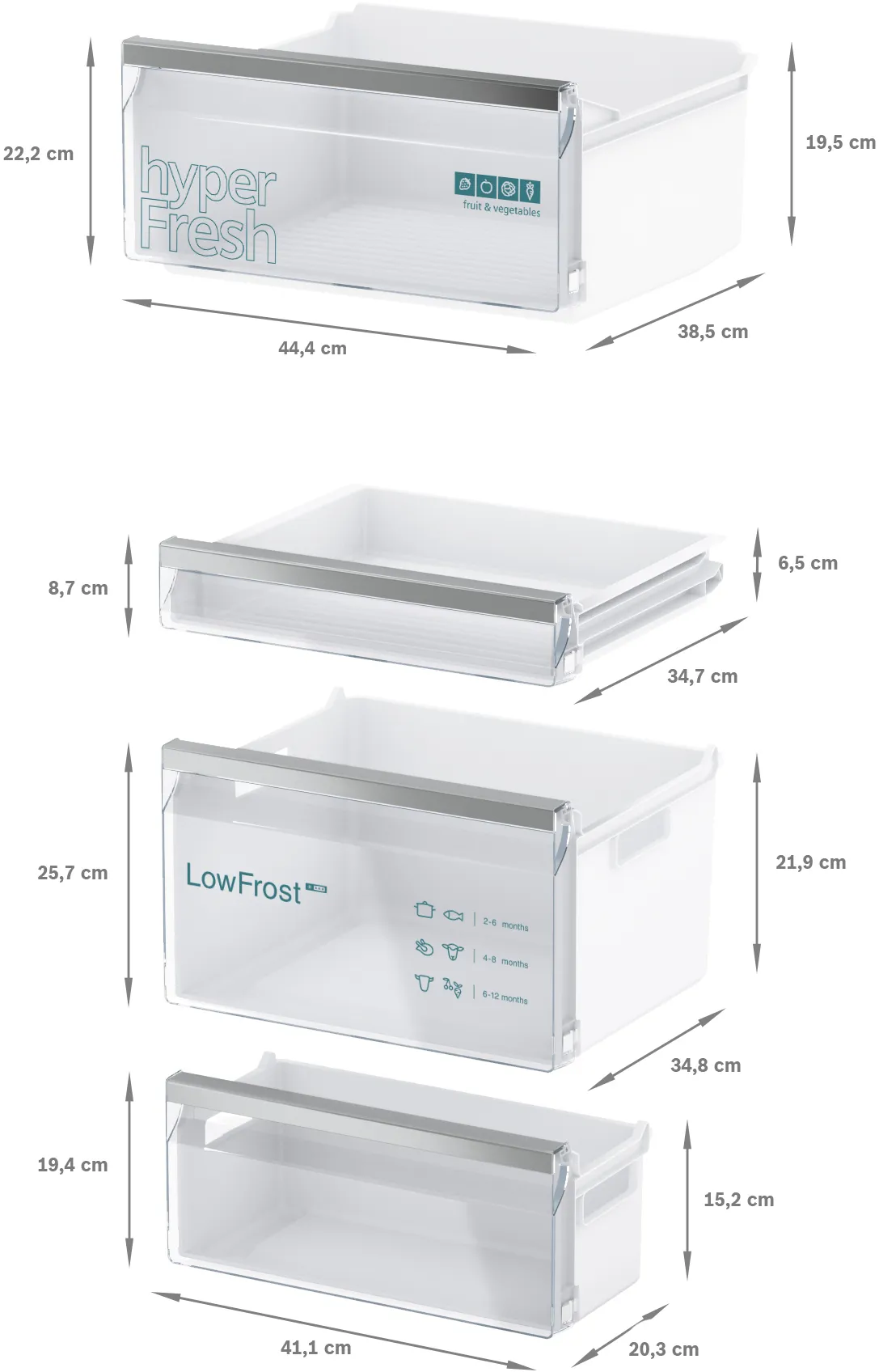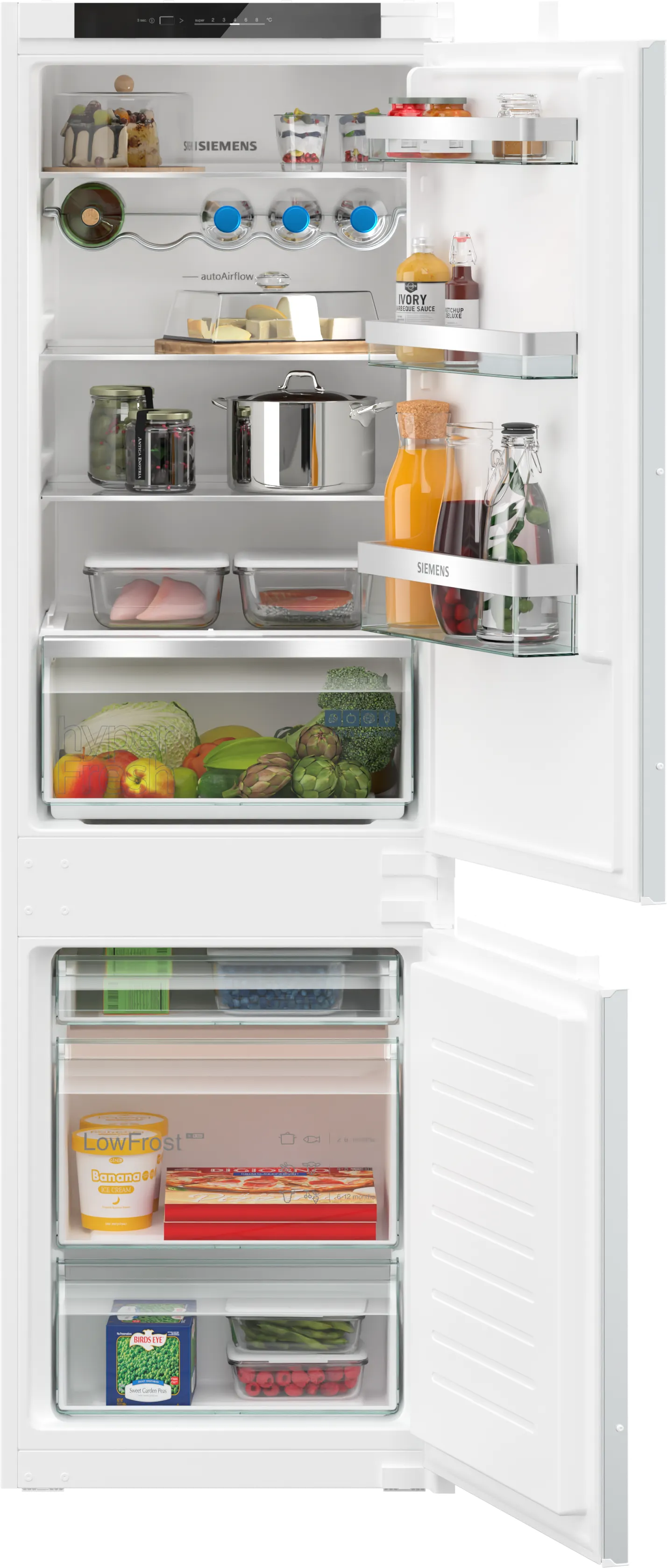 Завдяки системі hyperFreshbigBox продукти залишаться свіжими набагато довше. Цей холодильник також підтримує технологію Home Connect, що дозволяє вам керувати пристроєм за допомогою смартфона. Просто завантажте додаток Home Connect, зареєструйте пристрій та насолоджуйтесь навчальними і зручними функціями дистанційного управління.