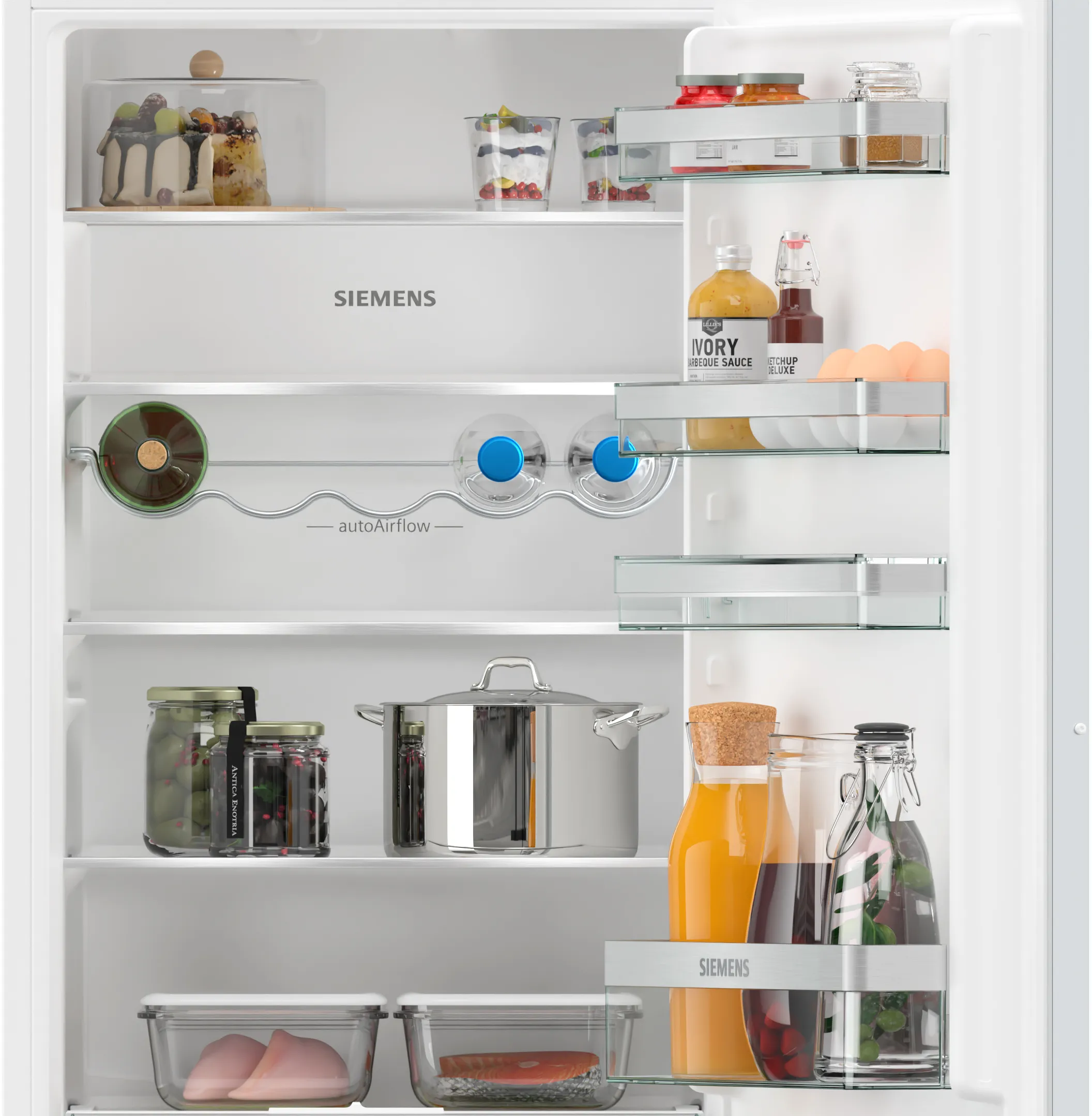 З рівнем шуму всього 35 дБ, він працює майже безшумно, що робить його ідеальним вибором для будь-якої кухні. Однією з ключових особливостей є система hyperFresh bigBox, яка дозволяє зберігати продукти свіжими на більш тривалий термін, завдяки оптимальному управлінню вологістю.