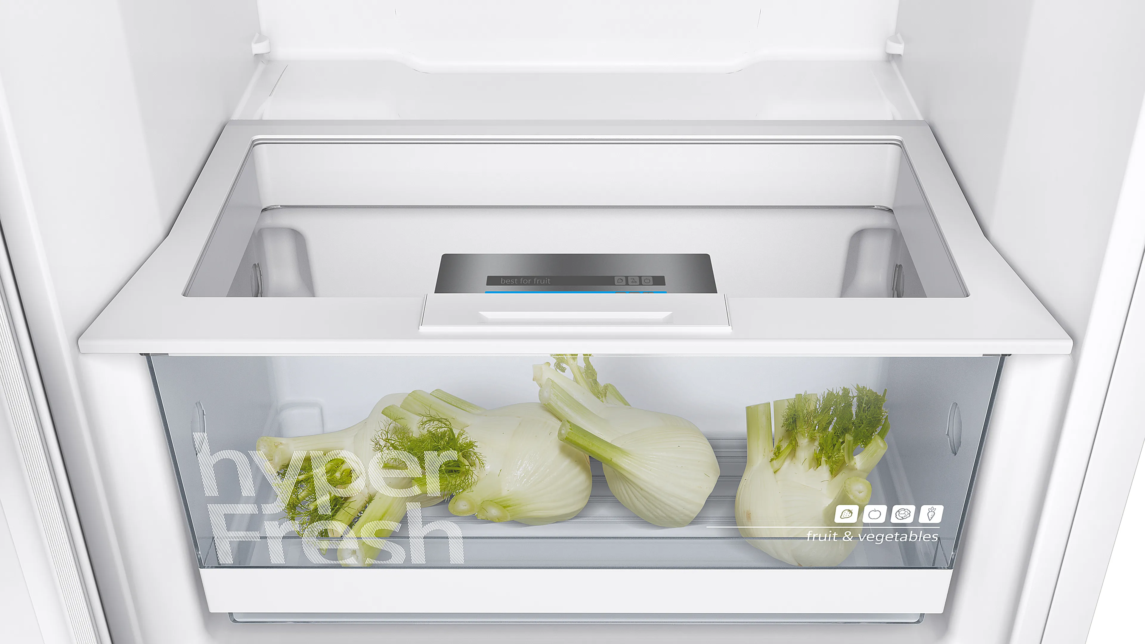 Він представлений в стильному білому кольорі, що робить його універсальним доповненням до будь-якого інтер'єру. Завдяки функції гиперFresh, ви зможете зберігати свіжість фруктів та овочів тривалий час, що дозволяє зберігати їх смакові якості та поживну цінність.