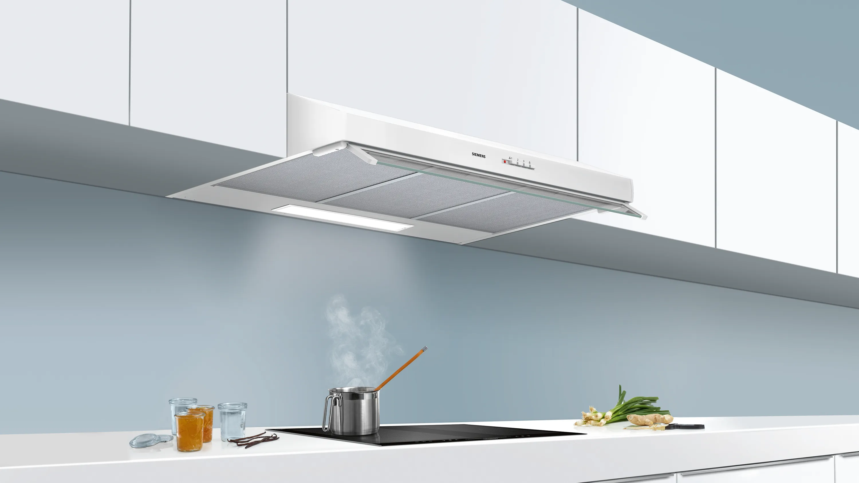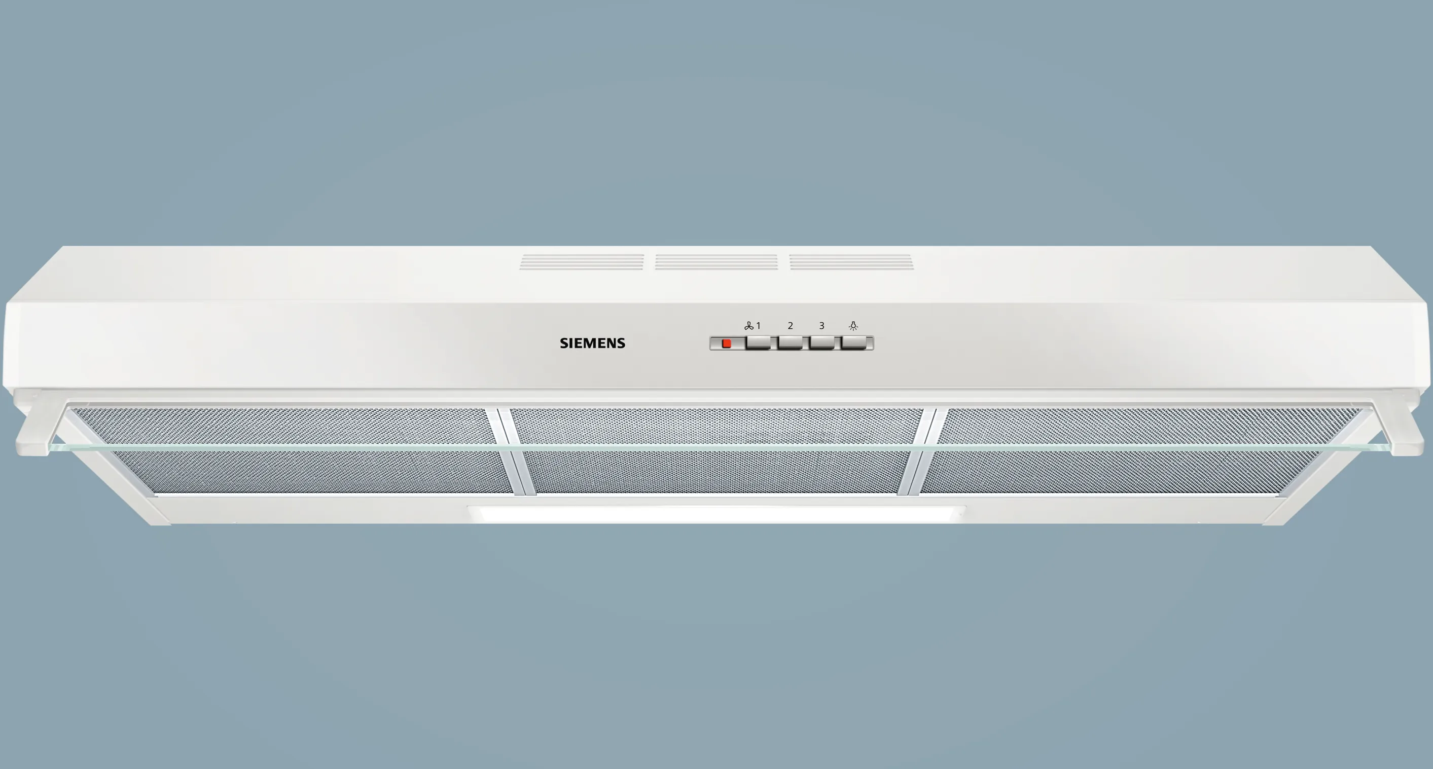 Духова витяжка Siemens LU93LCC20 - це стильний та ефективний прилад для вашої кухні. Її розмір 90 см дозволяє з легкістю вписатися в різноманітні кухонні інтер'єри. Витяжка виконана в елегантному білому кольорі, що надає їй сучасного вигляду.
