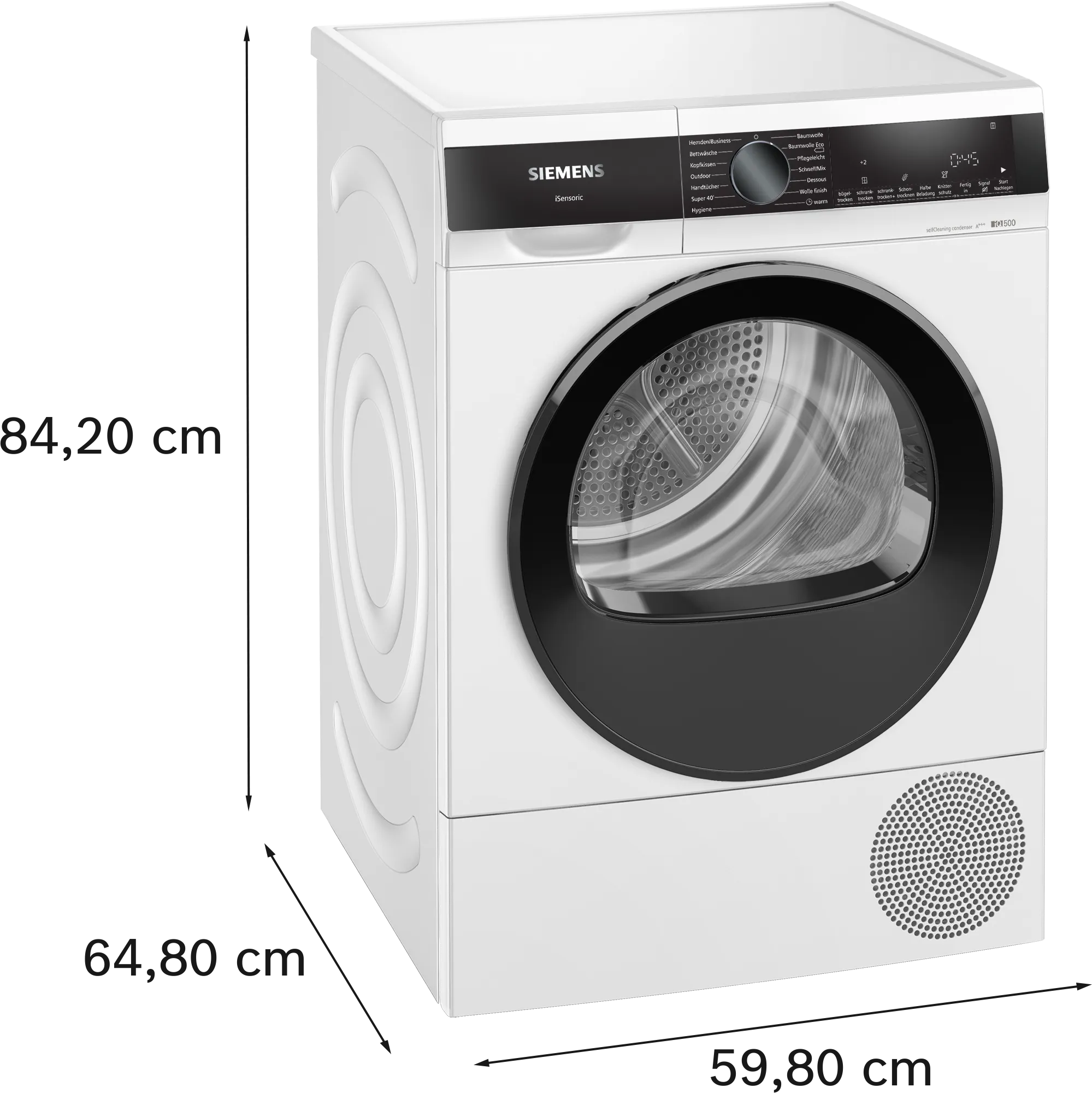Розміри приладу складають 842x598x613 мм, що робить його компактним та зручним для розміщення в будь-якому приміщенні. Один з головних плюсів цієї моделі – самоочисний конденсатор, який забезпечує ефективну роботу та мінімізує необхідність в обслуговуванні. З рівнем шуму всього 64 дБ(A), сушіння стає менш нав'язливим для вас та вашої родини.