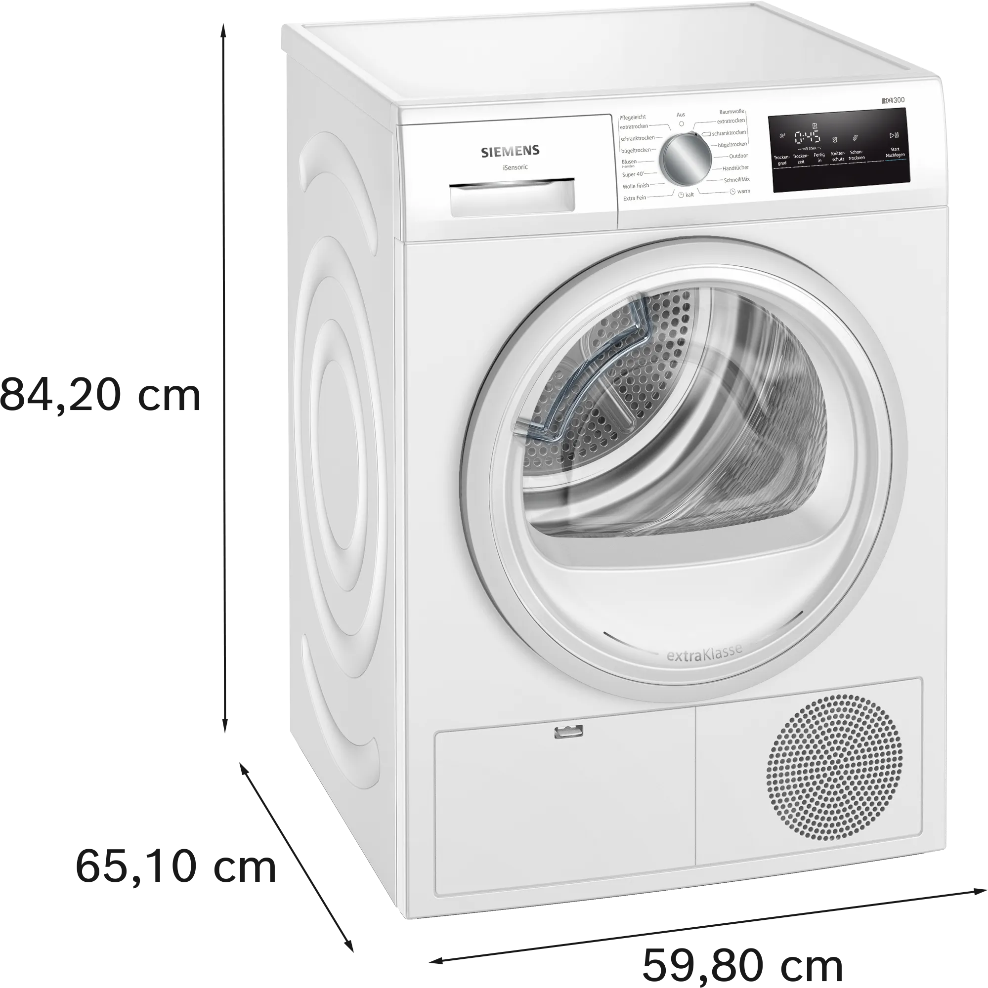 З її компактними габаритами 842 x 598 x 613 мм, сушильна машина легко інтегрується в будь-який інтер'єр вашої пральні. При цьому, вона працює з рівнем шуму всього 65 дБ(A), що забезпечує тиху та комфортну роботу.