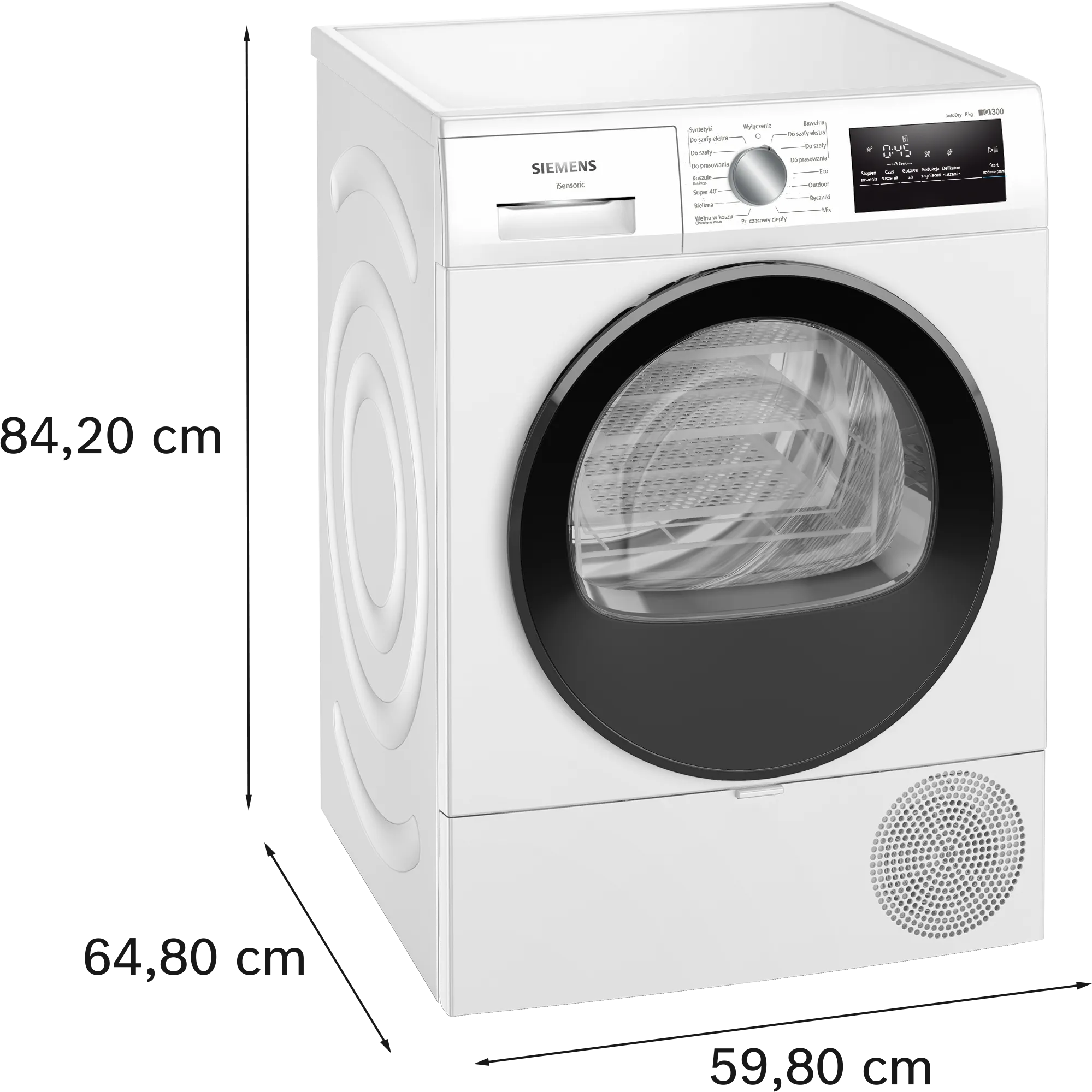 Сушильна машина Siemens WT45HV99PL – ідеальне рішення для вашого дому, що забезпечує високу продуктивність та зручність у використанні. Її максимальний завадок складає 8.0 кг, що дозволяє ефективно просушити велику кількість білизни за один раз.
