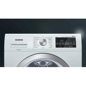 Сушильна машина Siemens WT47W461EU має елегантний білий дизайн із сріблястим фронтальним люком. Її компактні розміри (59,8 x 84,2 x 59,9 см) дозволяють вбудовувати пристрій у будь-який інтер'єр, а антивібраційні ребра забезпечують стабільність під час роботи.