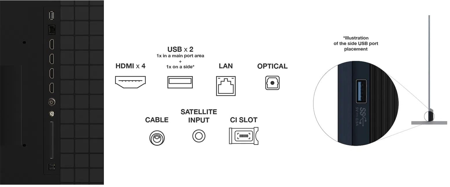 Система акустики Bang & Olufsen забезпечує чудову якість звуку, а можливості підключення через 4 HDMI і 2 USB входи дозволяють підключити безліч зовнішніх пристроїв. Завдяки підтримці DVB-T2, DVB-C та DVB-S2 ви зможете насолоджуватись різноманітними телеканалами без додаткових пристроїв.